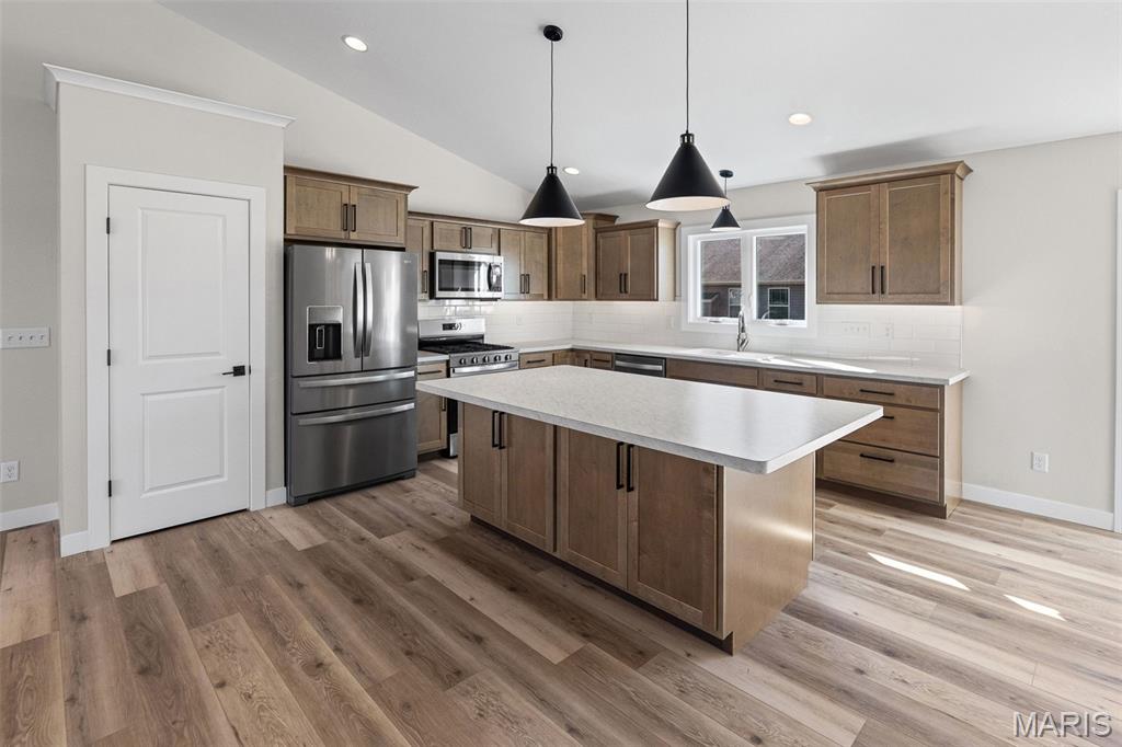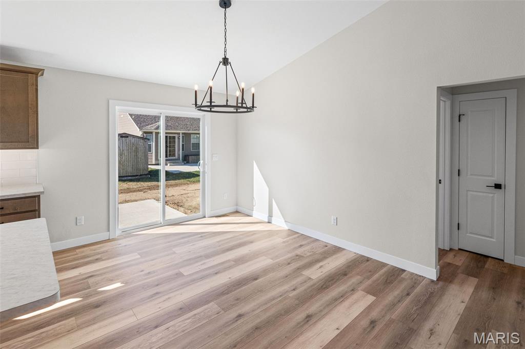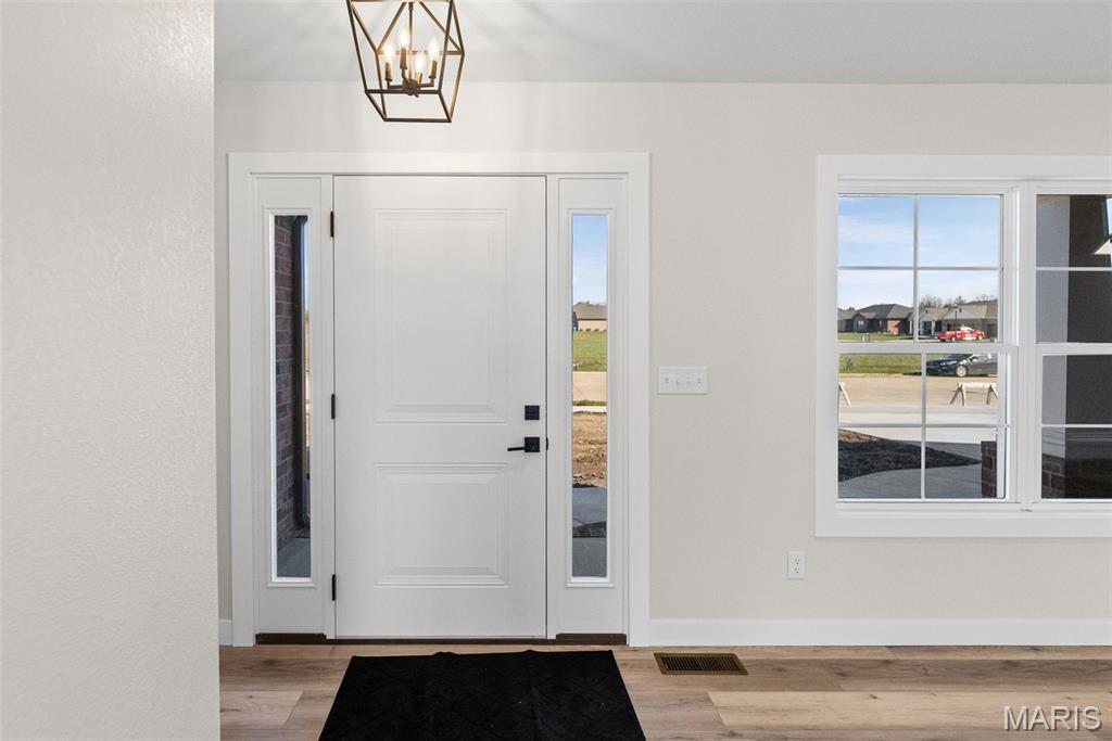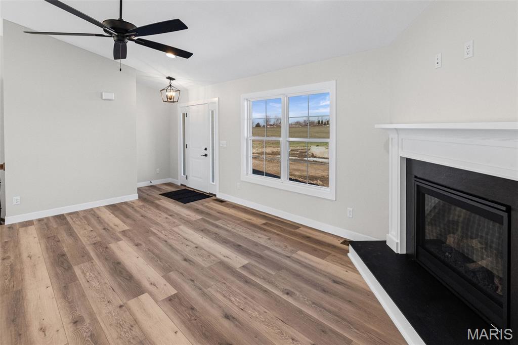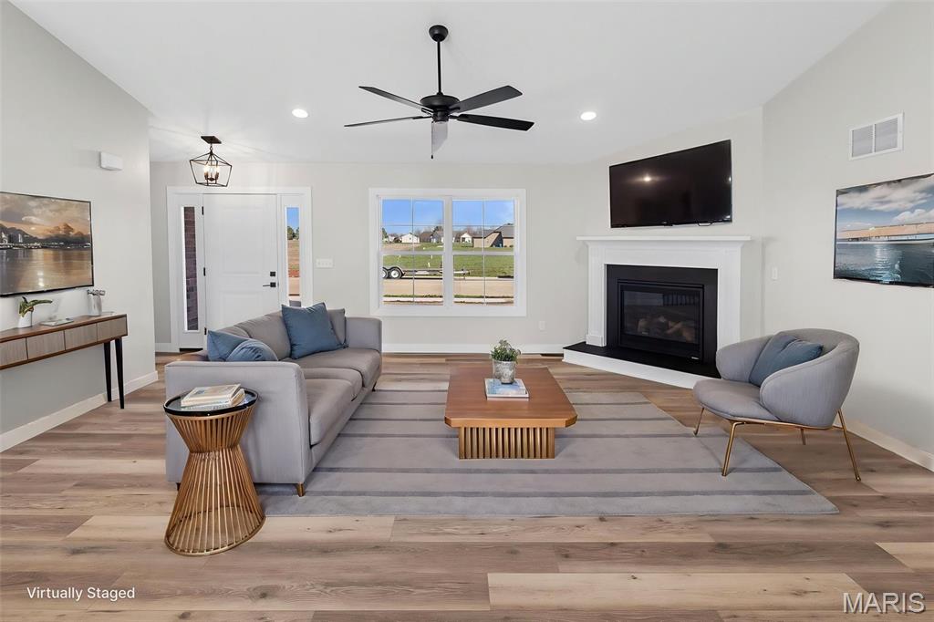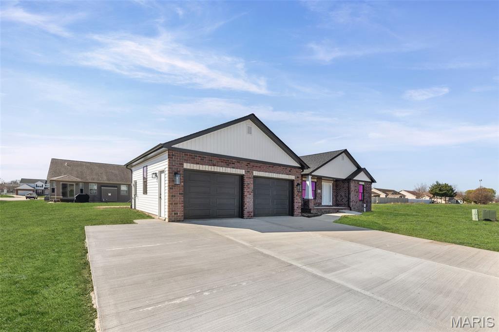 COMING SOON, FIRST SHOWINGS 3/22 NOON -3:00PM AT OPEN HOUSE. Another quality new construction by RWK Building & Remodeling, offering many features typically found in custom homes. This Craftsman-style ranch showcases an open floor plan with vaulted ceilings, a desirable split-bedroom layout, and abundant natural light throughout. The great room features a corner gas fireplace thoughtfully positioned to maximize wall space while creating a warm and inviting focal point. The kitchen is both stylish and functional, offering soft-close cabinetry and drawers, under-cabinet lighting, tiled backsplash, a lazy Susan, built-in trash storage, pantry, and a generously sized center island with additional seating and storage, along with stainless appliances already in place for your convenience. The dining area flows seamlessly with the kitchen and great room and opens to the patio through sliding glass doors, making it ideal for everyday living and entertaining. The primary suite is well appointed with a tray ceiling, a walk-in closet with wood shelving, plus an additional walk-in closet accessed through the private bath. The luxury primary bath includes a dual vanity, soaking tub, separate shower, and its own linen closet. Two additional main-level bedrooms also feature ceiling fans, with a full bath conveniently located between them and additional hallway linen storage. The laundry room includes a window for natural light and is ideally located near the garage to serve as a practical landing zone. The fully finished garage offers pull-down attic access, garage door openers, electric vehicle charging, and is complemented by generous concrete parking. An open staircase with decorative wrought iron spindles leads to the full unfinished basement offering approximately 1,648 square feet of space ready for future expansion, including two egress windows suitable for additional bedrooms, a rough-in for a third bathroom, and a radon mitigation system already in place. You will appreciate the attention to detail throughout, from the clean lines of the cabinetry and thoughtfully selected lighting to recessed lighting in key areas and ceiling fans in each bedroom and the great room. Landscaping is included in the price. Located just one mile from I-64, this home offers an easy commute to Scott AFB, MidAmerica Airport, and Boeing. Situated in the Wesclin School District, New Baden features a community park with a walking path, a pool with splash pad, and hosts local favorites like the June Jamboree and Chili Cookoff. We want to welcome you home.