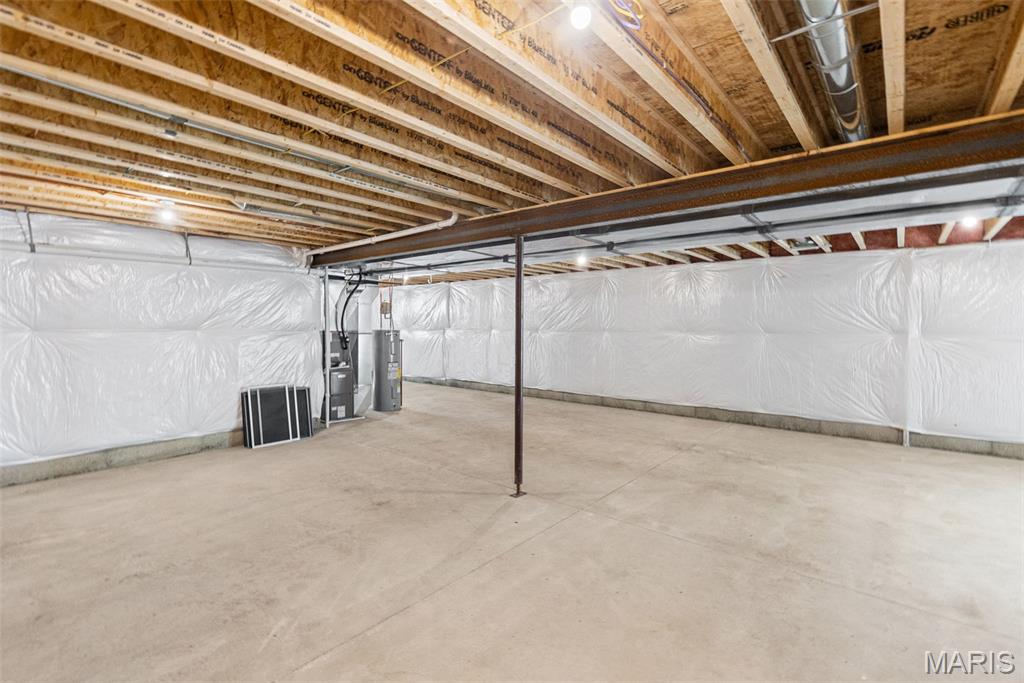 Basement Description 9 ft + Pour,Concrete,Daylight,Egress Window,Full,Interior Entry,Radon Mitigation,Roughed-In Bath,Storage Space,Sump Pump,Unfinished