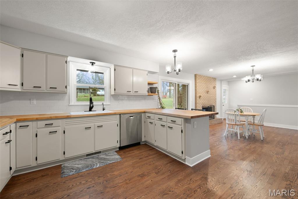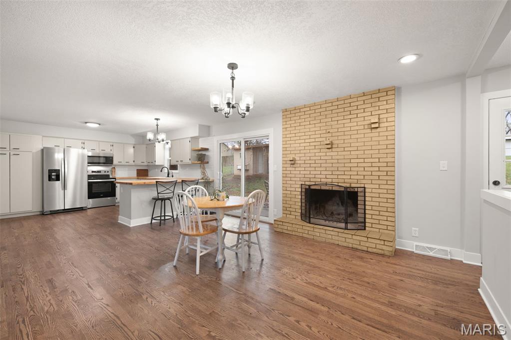 Thoughtfully updated and move-in ready, this raised ranch offers the space, layout, and modern touches today’s buyers are looking for. With updates throughout, the home blends a classic layout with fresh finishes, creating an easy, comfortable feel from the moment you walk in. The main level features three bedrooms, including a primary suite with a fully updated bathroom and walk-in tiled shower, along with an additional updated hall bath. The spacious family room flows into the dining area, anchored by a brick fireplace that adds warmth and character, all opening naturally to the kitchen. The kitchen has been refreshed with new countertops, updated finishes, and new appliances — making it both functional and inviting for everyday living and entertaining. Additional updates include flooring, doors, trim, fixtures, and bathrooms, giving the home a clean, cohesive look throughout. Along with all new siding. The lower level adds even more living space with a second fireplace, full bathroom, and a flexible area perfect for a second family room, office, or guest space. You’ll also find the laundry area and direct access to the attached two-car garage for added convenience. With multiple living spaces, solid updates, and a layout that just works, this home is ready for its next owner to move in and enjoy.