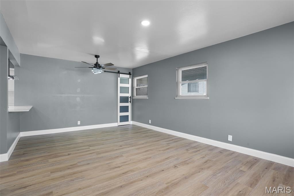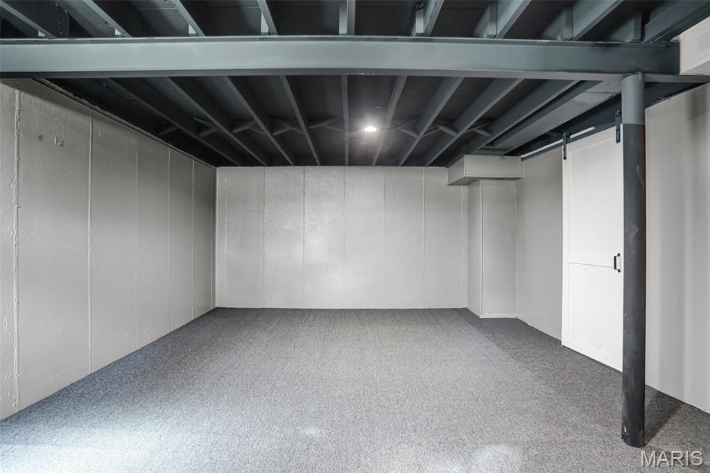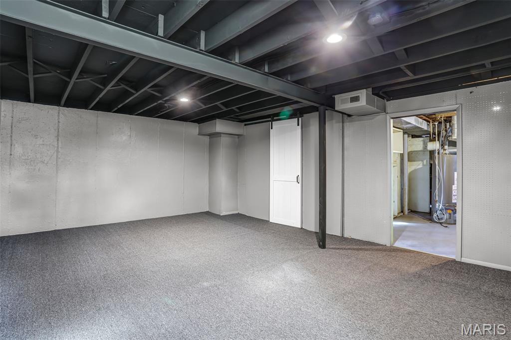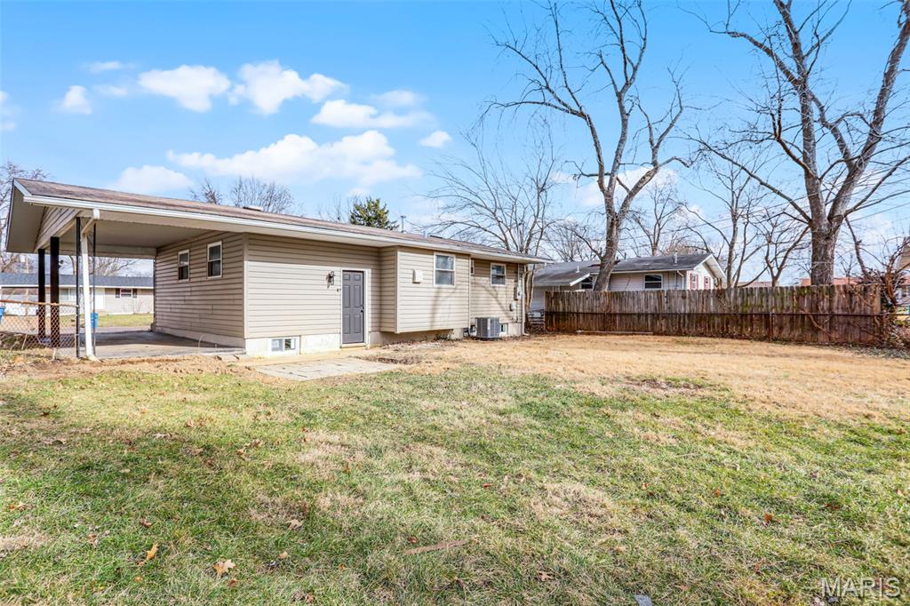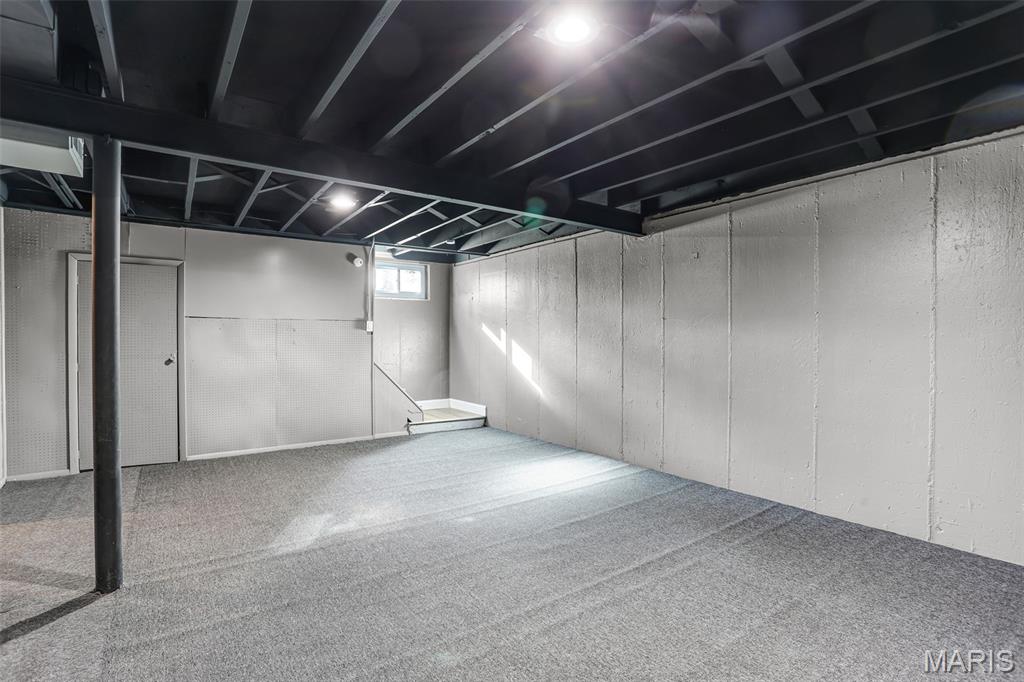 Beautiful 3-bedroom, 1-bath home with basement and the updates are the real deal! This move-in ready home has been transformed with a modern aesthetic throughout. The stunning kitchen is the showstopper, featuring white shaker cabinetry, quartz countertops, subway tile backsplash, and a bold island with range and hood. Complete with a refrigerator, black dishwasher, and a workstation sink with a matte black pull-down faucet, this kitchen checks every box. The open living and dining area flows beautifully from the kitchen pass-through and boasts new flooring, recessed lighting, and a stylish ceiling fan. The bathroom has been completely reimagined with large-format marble-look tile, a stunning ribbed black vanity, LED backlit mirror, matte black fixtures throughout, and hexagon tile flooring. The full basement offers incredible bonus square footage with rooms, new carpet, a painted exposed ceiling with recessed lighting, and abundant built-in shelving and storage, ideal for a rec room, home gym, or workshop. Outside you'll find a covered carport, a patio with pavers, a spacious backyard with a chain link fence, and a large open yard with plenty of room to make it your own. Additional updates include a brand new AC unit, giving you peace of mind for years to come.