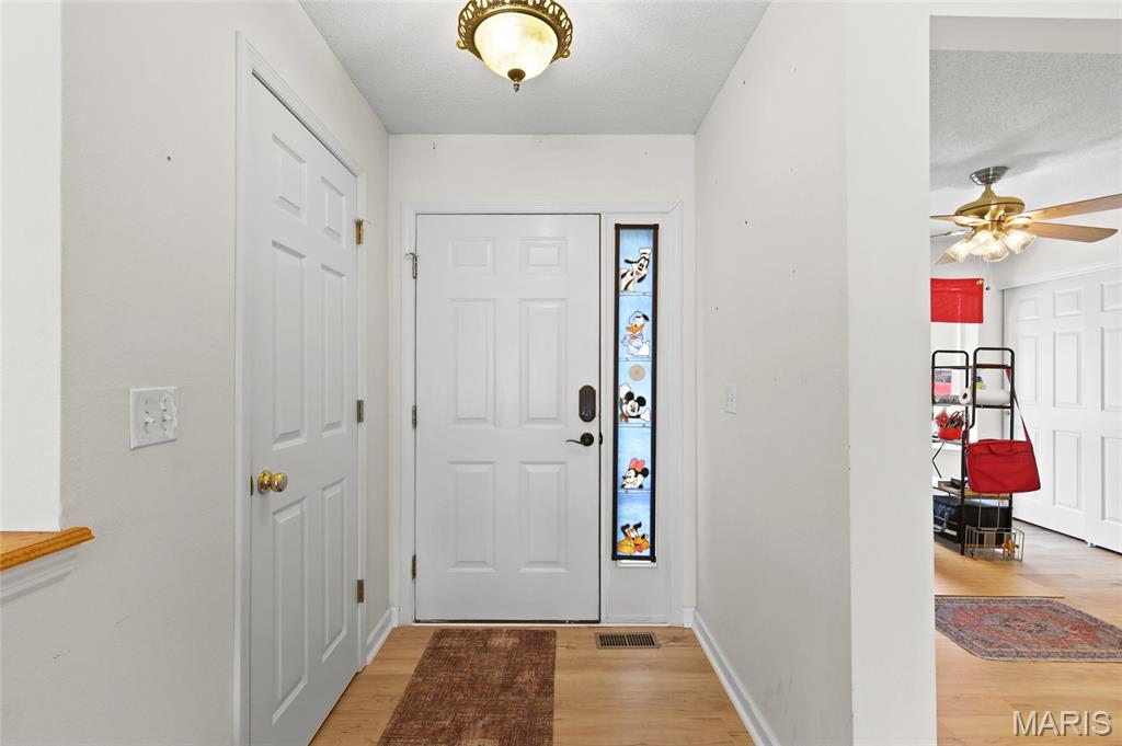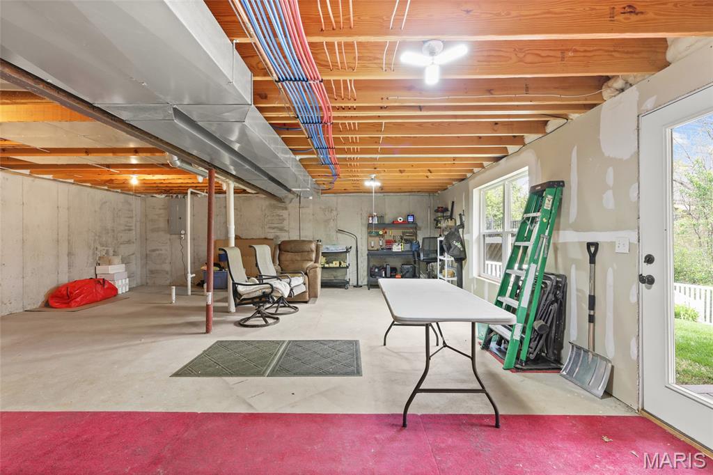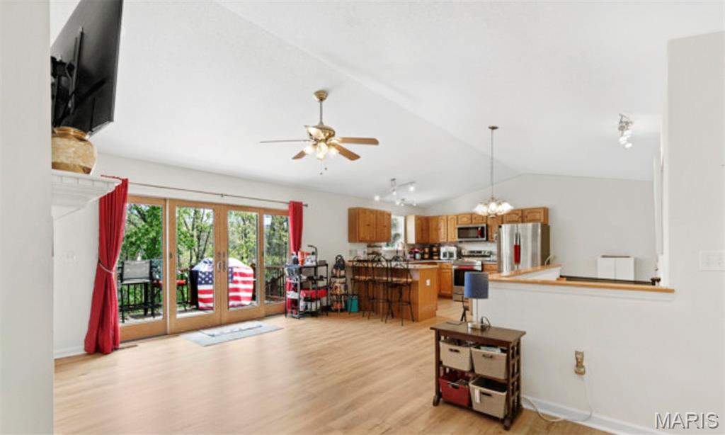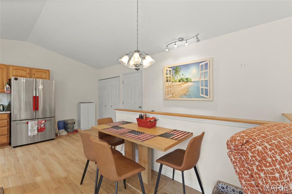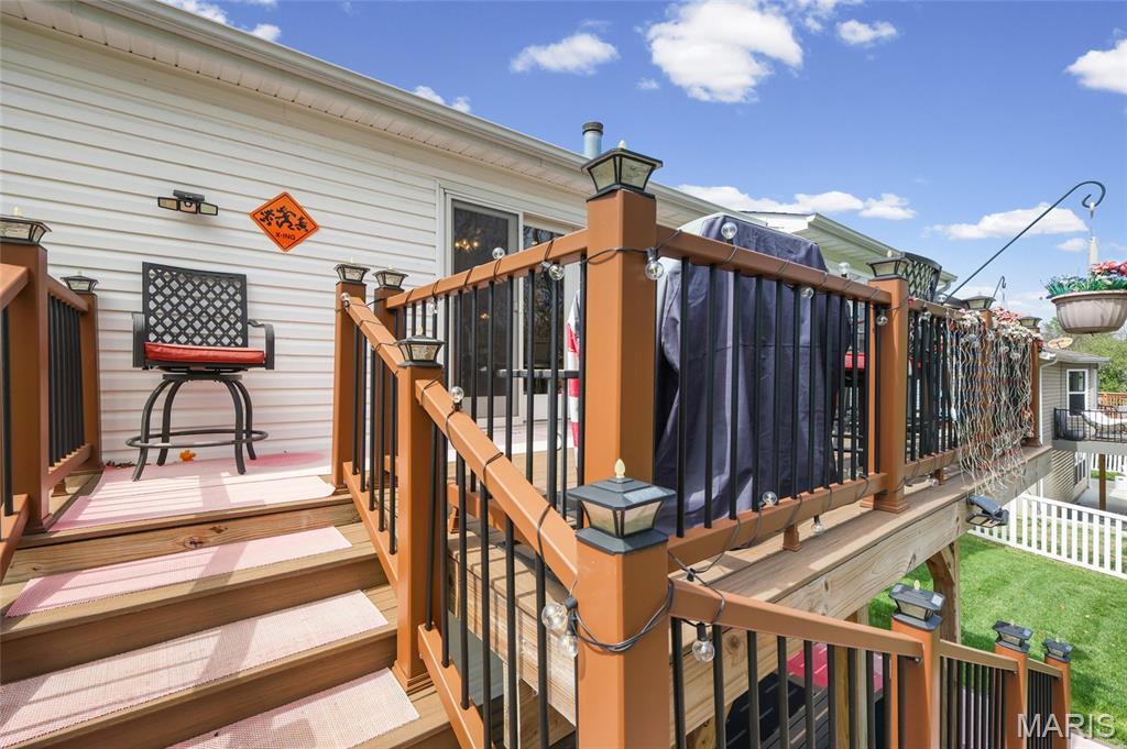 You have to see this one! Enter this 3-bedroom, 2-bath home via the entry foyer in High Ridge that is ready for new owners. Spacious and open with a vaulted ceiling, new plank flooring throughout, new HVAC, and more. The large kitchen offers updated granite countertops, large breakfast bar, lots of cabinet space, and tons of counter space, new stainless steel range with smooth cooktop, dishwasher, and microwave in 2022. (fridge not included). The main floor laundry room is off the kitchen. The large living room features a vaulted ceiling, newer vinyl plank flooring, and a wood-burning fireplace with built-in shelving. But the real gem is the large, private composite deck, which includes solar-powered deck lighting, overlooks the private, beautiful yard, features new railings, and has extra-wide steps to the landscaped yard. Under the deck is an additional composite deck area patio for added space in the shade. The primary bedroom is spacious and features a private full bath, a soaking tub with shower doors, and a large closet. Bedroom 2 has a bow window for added square footage. Both bedrooms 2 and 3 are off a separate hallway, with a full bath with a tub. The lower level is unfinished, walk-out with 220 service. The sliding glass door opens to a beautiful, fenced, and private yard and under-deck. New furnace/ac in 2024, new roof in 2017. The oversized 2-car garage has 'MyQ' garage door system. Security cameras cover the front, back, and doorbell with motion detection. Front and back yard, including solar panel lighting. Lots of updates and improvements. Great neighborhood on private street. Northwest School District, close to shopping, entertainment, and easy access to Hwy. 30, 141, or 270. This home is a must-see. OPEN HOUSE SATURDAY 11 -1 PM (4/11/26) More interior photos by 4/10
