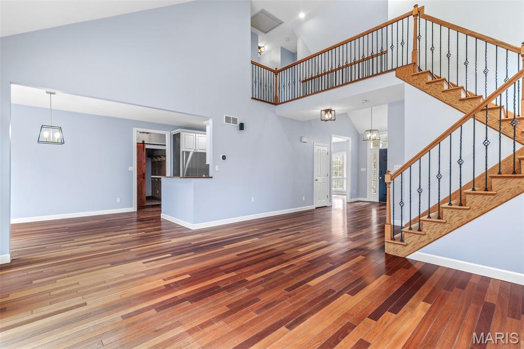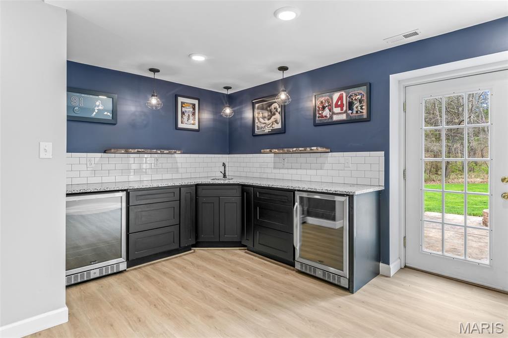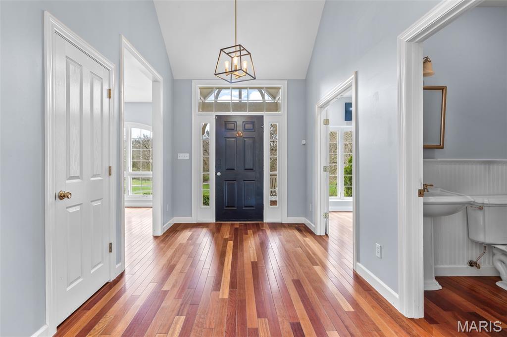 THIS IS A PLACE WHERE YOU WILL MAKE MEMORIES! A custom-built, one-and-a-half-story residence privately situated on 10.96 partially wooded acres. Beautifully upgraded, this exceptional property blends refined indoor living with resort-style outdoor amenities, all surrounded by the natural beauty and serenity of a wooded setting. From the moment you arrive, a sense of privacy and peace sets the tone. Upon entering the home, you’re greeted by beautifully appointed living spaces that flow seamlessly from room to room. The formal dining room is an elegant space ideal for hosting dinner parties with its rich hardwood floors that add a timeless appeal, while the layout offers plenty of room for a large dining table and statement furniture. A dedicated den/bedroom with glass French doors provides a flexible space perfect for a home office, library, or quiet retreat. The kitchen serves as the heart of the home, and has been thoughtfully designed with cream-colored cabinetry with select cabinets featuring elegant glass fronts that add visual interest and display opportunities. Granite countertops provide both generous prep space for cooking and entertaining. A large pantry ensures ample storage, keeping the kitchen organized and clutter-free. Whether entertaining guests or enjoying weeknight dinners, this kitchen is designed to gather people together comfortably and effortlessly. Just off the main living areas, step outside onto the back deck featuring low-maintenance composite decking. This thoughtfully designed outdoor space extends your living area and provides an ideal spot for grilling, dining, or simply taking in the peaceful wooded surroundings. One of the most captivating features of this property is the exceptional outdoor living space. The inground saltwater pool transforms the backyard into a private resort, inviting relaxation and fun throughout the warmer months. Designed for both leisure and entertaining, the pool area is complemented by a pergola and sun deck. Whether hosting poolside barbecues, cooling off on hot summer days, or enjoying tranquil evenings under the stars, this outdoor oasis delivers an unparalleled lifestyle experience. The surrounding acreage ensures privacy and creates a peaceful setting rarely found in residential neighborhood. The primary suite, located on the main level, is a true sanctuary. Spacious and serene, it provides a restful retreat at the end of the day. The primary bathroom is designed with luxury and comfort in mind. Highlights include: A relaxing soaking tub, double bowl vanity with ample counter space and generous layout conducive to a spa-like experience. The walk-in closet is thoughtfully appointed with custom built-in organizers, providing exceptional storage and functionality while maintaining an organized and polished appearance. The home offers a total of five bedrooms and three-and-a-half bathrooms, providing ample space for family, guests, or flexible living arrangements. Upper-level bedrooms are well-sized, offering comfort and privacy, while additional bathrooms feature quality fixtures and finishes designed to meet everyday needs with ease. The finished walkout basement significantly expands the home’s living and entertaining space. Designed with modern convenience and style, this area features: Luxury vinyl plank flooring, a stylish wet bar, built-in spirit coolers and a dedicated sleeping room ideal for guests. With direct access to the outdoors, the walkout lower level is perfectly suited for entertaining, movie nights, game days, or multigenerational living. Don't miss the side patio with firepit. Upgrades include: Dual HVAC systems, dual hot water heaters, ceramic tile flooring and main floor laundry. ALERT!!! OUTDOORSMAN'S PARADISE, the owner has the ability to hunt the property and with extra tags. And don't miss the chance to hike along the meandering creek or walk/ride the ATV trails. START PLANNING YOUR POOL PARTY-THIS PROPERTY IS AMAZING!