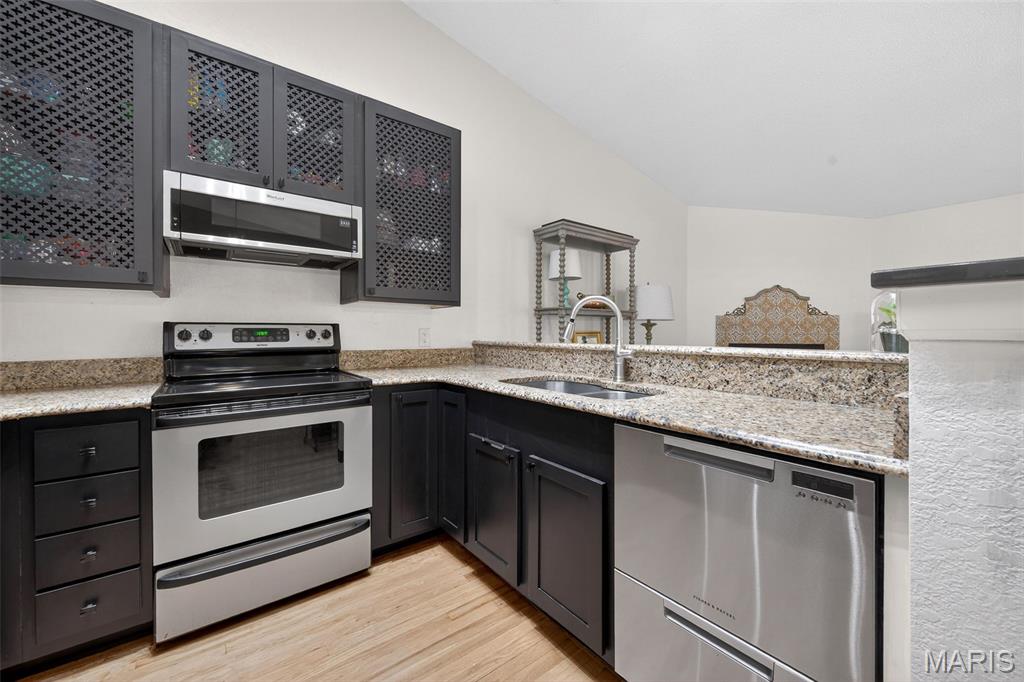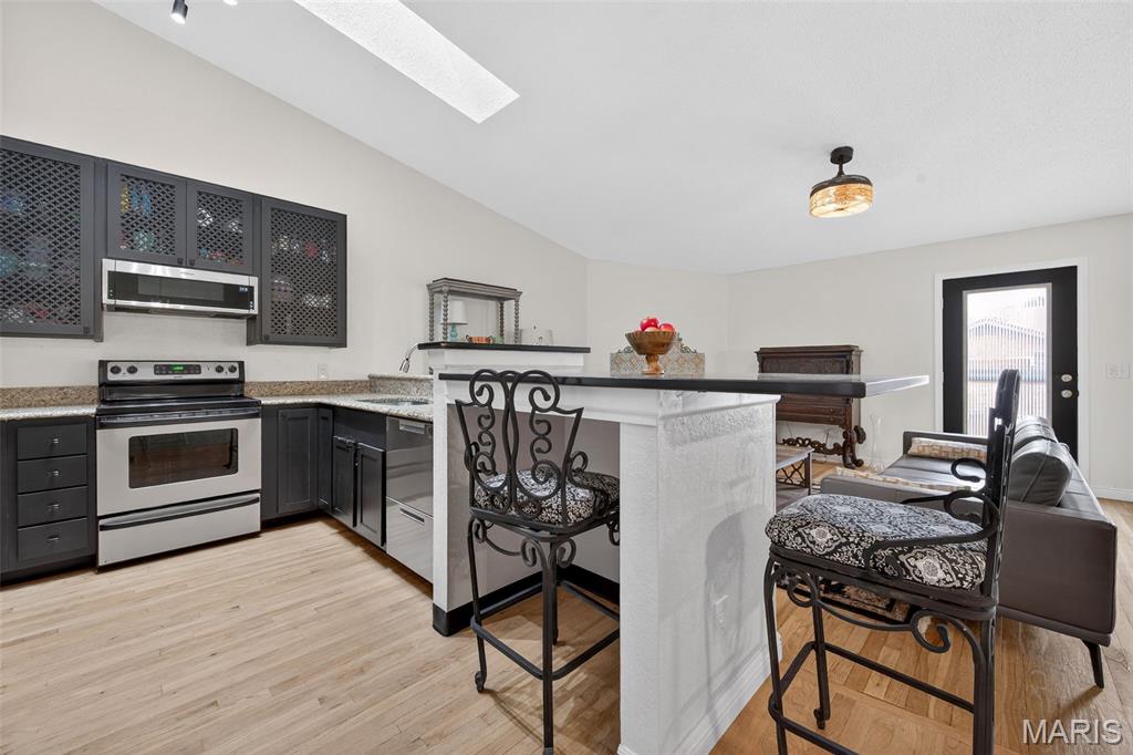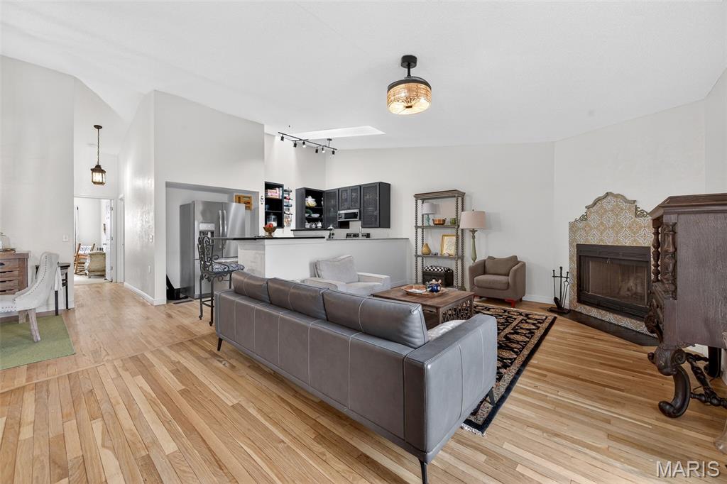 Beautifully updated 2-bedroom villa offering stylish, low-maintenance living! This move-in ready home features rich wood flooring, soaring vaulted ceilings, skylights that fill the space with natural light, and a cozy wood-burning fireplace. The updated kitchen showcases modern finishes, while both bathrooms have been tastefully renovated. Enjoy seamless indoor-outdoor living with a private patio—perfect for relaxing or entertaining. The walk-in entry provides true no-step living, and the tucked-under 2-car rear-entry garage offers convenience and additional storage. Speaking of storage—this home has plenty! Ideally located near major highways for easy commuting, plus enjoy fantastic subdivision amenities including an indoor and outdoor pool, clubhouse, gym, and pickleball courts.