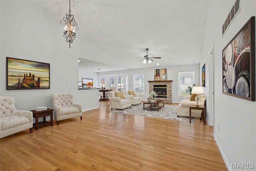 Welcome to 2614 Samuel Drive located in Villages of Dardenne Campbell Village. Enjoy the lakes, walking trail, pools - all just steps away, or enjoy a day of golf at the Links of Dardenne. This great 2 bedroom, 3 full bath Villa offers an open floorplan featuring a great room with vaulted ceilings, real hardwood and a cozy gas fireplace. Kitchen has plenty of counter and cabinet space and stainless steel appliances. Off the kitchen is the main floor laundry and access to your 2 car garage. Primary Bedroom/bathroom, second bedroom and full bath complete the first floor. Lower level offers a spacious great room, a large additional sleeping area with natural light and a third full bathroom. Plenty of unfinished area for storage. Easy access to 364/64 and Highway K.