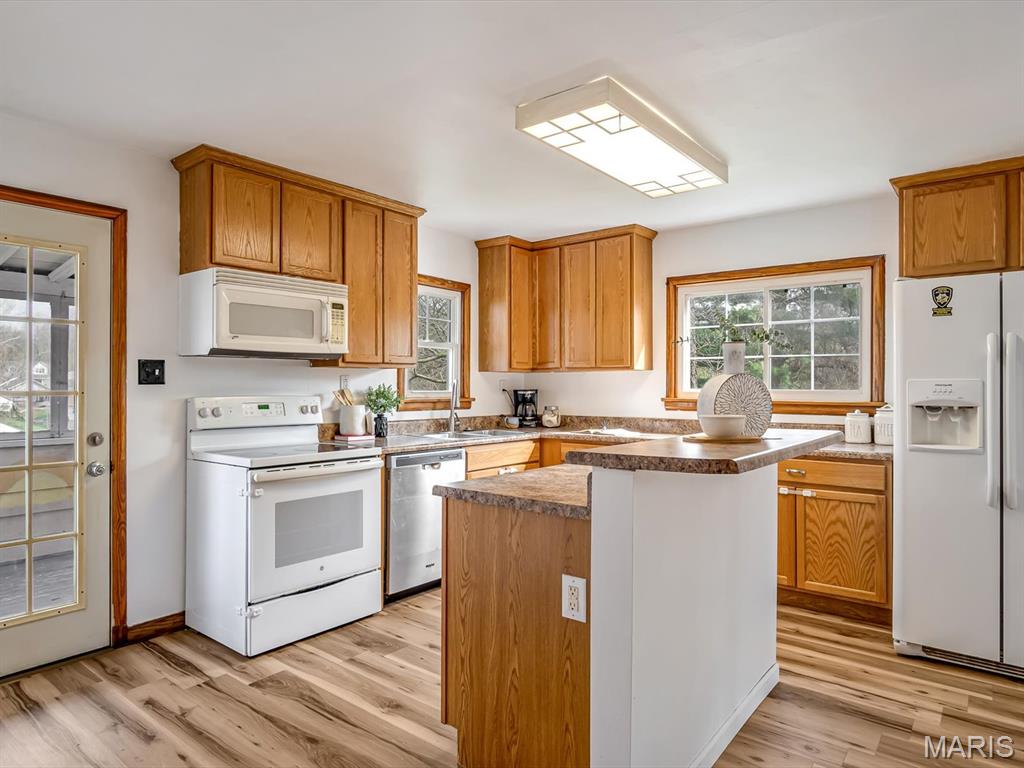 Welcome to this charming home! 3-bedroom, 1-bath- on a quintessential Alton brick road. Step inside to a lovely entryway featuring a statement staircase, arched doorways, and beautiful original details that add warmth and charm. The spacious living area showcases a classic brick fireplace, creating a cozy focal point perfect for relaxing evenings. Some flooring has been updated to LVP, while the original hardwood floors offer incredible potential to be restored to their natural beauty in other parts of the home. The eat-in kitchen includes a convenient island, providing space for cooking, gathering, and everyday living. Cabinet space is not lacking here! Step Outside, enjoy a fenced-in yard ideal for pets, play, or entertaining. This home blends character, comfort, and opportunity — a wonderful place to make your own! Call your favorite agent for a private showing!