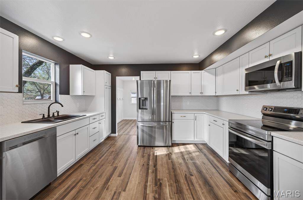 Picture yourself living in this beautifully remodeled home in the heart of Crocker! This 4 bed, 2 bath home features a warm and inviting living area with electric fireplace and built-in shelving. The updated kitchen offers stainless steel appliances and modern finishes throughout. Main level includes 2 bedrooms, a full bath with tiled shower, and laundry room. Upstairs features 2 additional bedrooms and a second full bath with tiled shower. Unfinished basement provides great storage or potential for additional living space. Enjoy the fully fenced yard, brand new shed, garage, and a durable metal roof. Located on the outskirt towns of Fort Leonardwood, for those looking to live on the way to Lake of the Ozarks and approx. 2 hours to St. Louis.