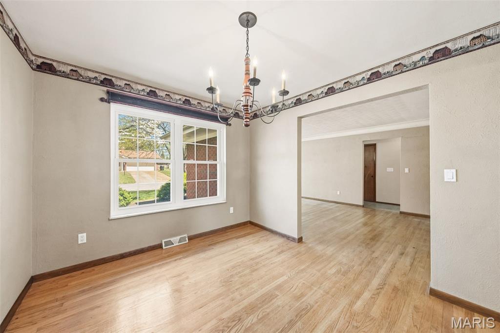 OPEN HOUSE SUNDAY 4/12 1PM-3PM. Located in the highly sought-after Dorchester Village Subdivision, this impeccably maintained all-brick ranch is a perfect fit for a first-time buyer or someone looking to downsize without sacrificing space or style. Offering 1,530 square feet of thoughtfully designed living space, this home blends timeless charm with modern comfort—all nestled on a spacious .26-acre corner lot along picturesque, tree-lined streets. Step inside and you’re immediately greeted by gleaming original hardwood floors, sun-drenched rooms, and an abundance of newer windows that fill the home with natural light. The semi-open floor plan features wide openings, elegant concave crown molding, and a seamless flow between the oversized living room, formal dining area, and inviting family room—creating the perfect central hub for everyday living and entertaining. The family room connects effortlessly to the kitchen and opens to the backyard through French doors with built-in blinds. The large eat-in kitchen is both functional and stylish, featuring updated luxury vinyl plank flooring and ample space for gatherings. The primary suite offers a private retreat with an ensuite bath and dual closets, while the additional bedrooms provide comfort and flexibility. You’ll appreciate the character-rich wood trim paired with touches of modern lighting throughout. One-level living extends into the deep two-car garage, complete with generous storage, a workshop area, washer/dryer setup, and even attic storage above. Enjoy peace of mind with major updates already completed, including a newer roof with architectural shingles and ridge cap, updated electrical panel, and newer water heater. This home is truly move-in ready, yet offers exciting potential for your own custom upgrades over time. Outside, the curb appeal shines with beautifully maintained landscaping, stone-edged garden beds, and mature trees providing the perfect balance of shade and sunlight. The fully fenced backyard features white vinyl privacy fencing, a large storage shed, and an oversized deck—ideal for entertaining, relaxing, or enjoying everything from summer BBQs to cozy winter fire pits. Perfectly located near major highways, parks, trails, shopping, dining, and healthcare, this home delivers both convenience and lifestyle. Merely blocks from St. Clair Country Golf Club & the Dorchester Swim & Tennis Club, minutes from Eckert's Family Farm, Scott AFB, Downtown Belleville, and just a short drive to the St. Louis metro area and everything it has to offer—this is location, value, and livability all wrapped into one that is the perfect blend of comfort & style—don’t miss your chance to call it home!