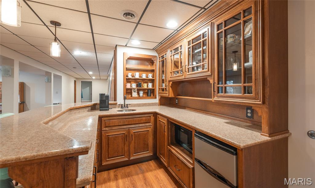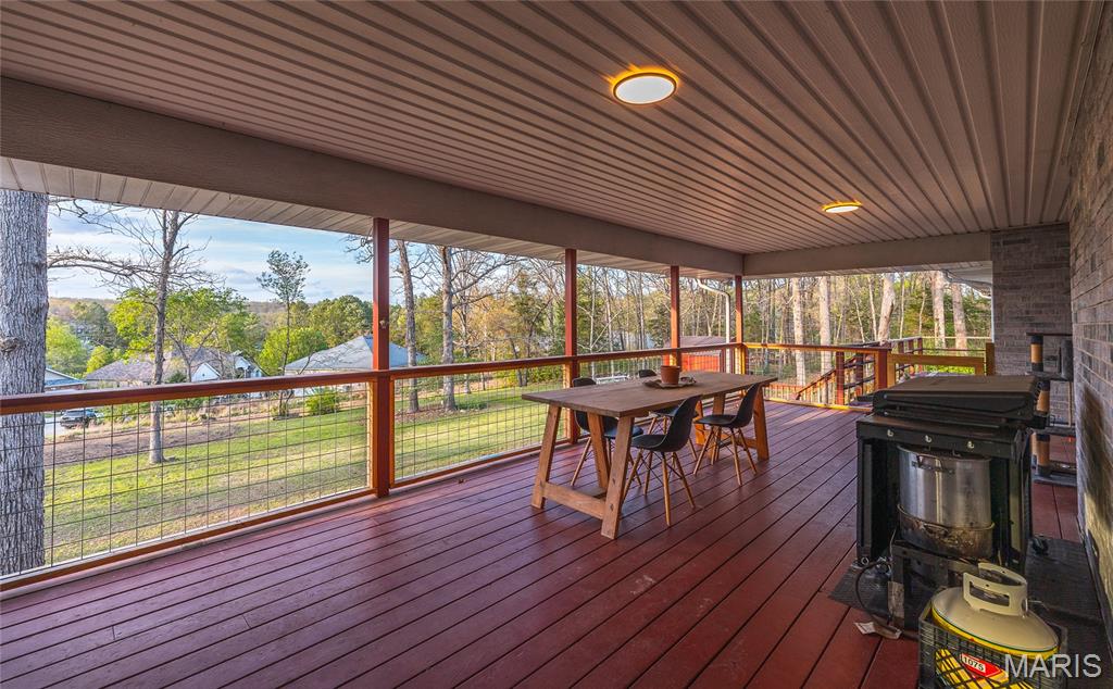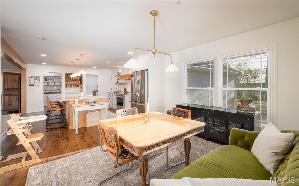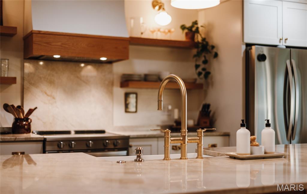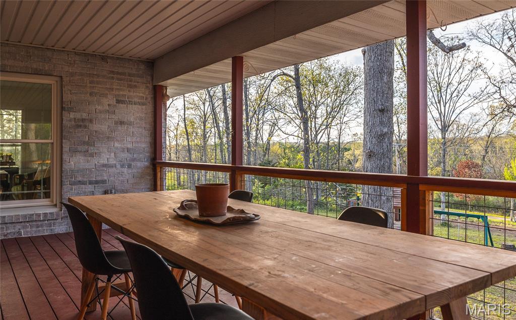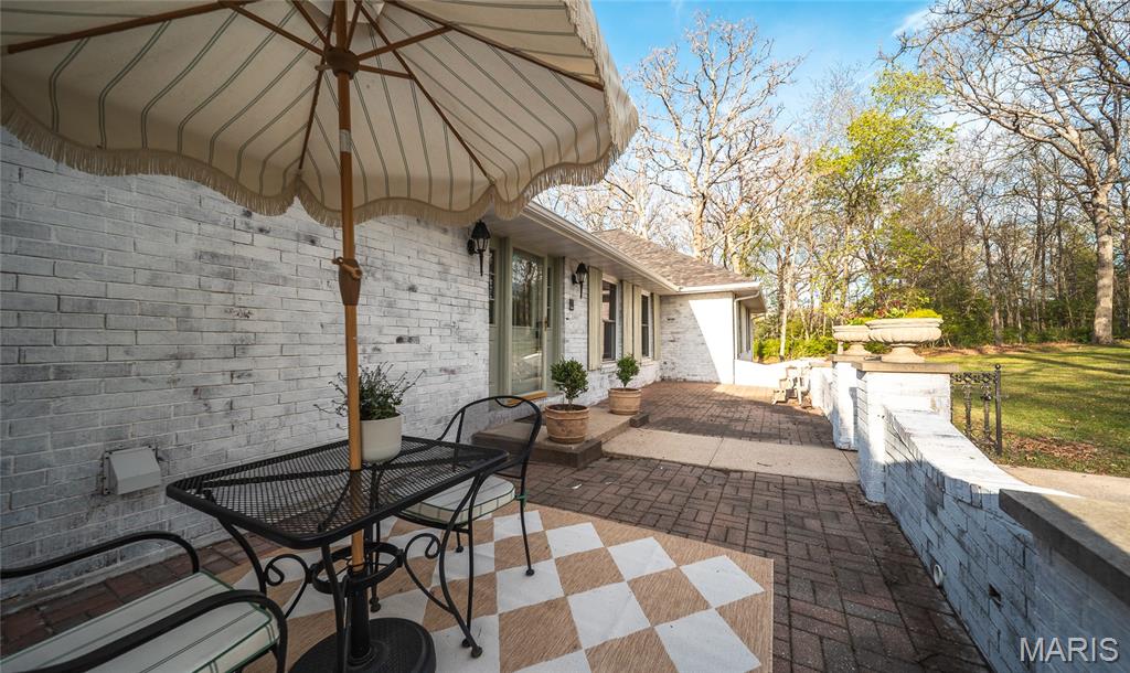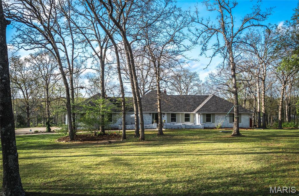 Some homes are updated. This one was reimagined. Tucked beneath a canopy of mature oaks on Meadowview Lane, this white brick ranch has been transformed with a level of craftsmanship rarely seen in Phelps County. Step through the iron entry gate into the courtyard-style front entry and something immediately feels different. This home was loved well and invested in deeply, and it shows in every room. The kitchen is extraordinary. A wall was removed, a steel beam installed, and what was created stops people in their tracks. Custom cabinetry, Taj Mahal quartzite countertops and full slab backsplash, a custom solid wood range hood, unlacquered brass hardware that will only grow more beautiful as it develops its natural patina, a farmhouse sink with a brass bridge faucet, open wood shelving, and brass pendant lighting. Just off the kitchen, the butler's pantry offers butcher block and custom cabinetry that provides the storage you actually need. This kitchen belongs in a design publication. The dining area wraps in windows on two sides, pulling in natural light all day and looking out into the mature trees. The open flow between these spaces is seamless and warm. A large covered deck extends the living space outside, made for morning coffee and summer gatherings, surrounded by native plantings including hydrangeas, dappled willows, lenten roses, coneflower, and yarrow, beautiful and low maintenance year after year. Every major system has been addressed and done right. New Owens Corning architectural roof in 2024. New HVAC inside and out in 2021. New high-efficiency heat pump water heater in 2024. Radon mitigation completed in 2025. Bathrooms updated in 2026. New Mohawk Air.O hypoallergenic carpet. New gutter screens. Fresh paint throughout. Smart home lighting. Abode security system. Both well access and Phelps County Water Supply District No. 2 connection, with an owned water softener already in place. This is the one people call about the next morning. Come see it before someone else does.