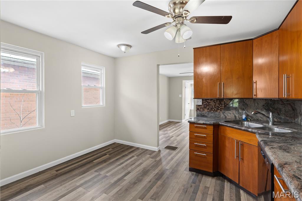 Welcome to your charming new home in the heart of Alton, Illinois! This adorable residence features freshly painted walls and luxurious vinyl plank flooring in kitchen, living room and hallway. The updated kitchen boasts stunning granite counters and modern cabinets, making it a delightful space for cooking and entertaining. With three main floor bedrooms, including a spacious primary suite with an en-suite bathroom, this home is ideal for families. The thoughtful split floor plan offers privacy, with the primary bedroom located at the back and two additional bedrooms at the front, separated by a hall bathroom. The lower level is neat and clean, featuring a bonus room that can easily serve as an additional bedroom, complete with full-size windows for natural light. Located in a fantastic neighborhood, this home truly has it all. Don’t miss your chance—schedule your appointment today!