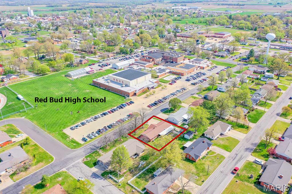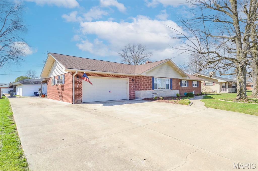 Price listed is Starting Bid Only. Bidding starts closing 4/29/2026 @ 6:30 p.m. Modern comfort meets classic charm with this beautifully maintained three-bedroom, two-bathroom solid brick ranch featuring a full basement and a versatile in-law suite, all nestled in the heart of Red Bud, IL. From the moment you arrive, the inviting front entrance opens to a spacious, light-filled living room where large front windows bathe the space in natural light, highlighting the plush carpeting underfoot. Just beyond, a combined dining area and kitchen create a functional and welcoming layout perfect for both everyday living and entertaining. The kitchen is well-appointed with custom upper and lower cabinetry, an eat-in breakfast bar, and includes all appliances. An exterior door off the dining area leads to a screened-in porch—ideal for enjoying outdoor dining and gatherings in comfort. Three main-level bedrooms are conveniently located off the hallway and share a well-appointed full bathroom, with one bedroom thoughtfully converted into a main-level laundry room for added convenience. The lower level, accessible through the attached two-car garage, expands the home’s living space with a private in-law suite. This level features a large living room, a bonus room previously used as a bedroom, a combined dining area and kitchen, and a three-quarter bathroom—perfect for extended family or guests. An unfinished area offers built-in shelving for storage and houses the home’s mechanical systems. Outside, the manicured front lawn is shaded by mature trees, while a poured concrete driveway wraps around to the backyard, where you’ll find maintained garden beds and a covered patio—an ideal setting for relaxing or entertaining outdoors. Conveniently located near local schools and the charm of downtown Red Bud, this home offers the perfect blend of space, comfort, and small-town appeal. Property will sell under auction terms and be sold AS- IS, WHERE-IS. Seller, will not make any repairs as a result of any building, occupancy, or environmental inspections. Buyer will be required to sign an Auction Purchase & Sale Agreement if final bid is accepted by Sellers. Shed in the back yard is being removed and not selling with the property