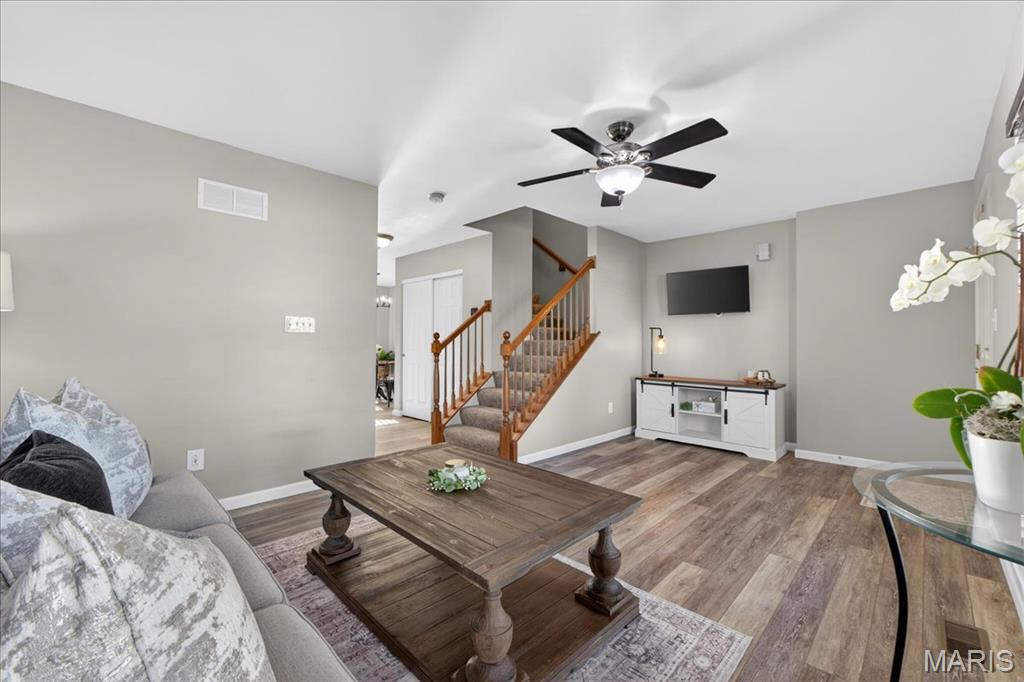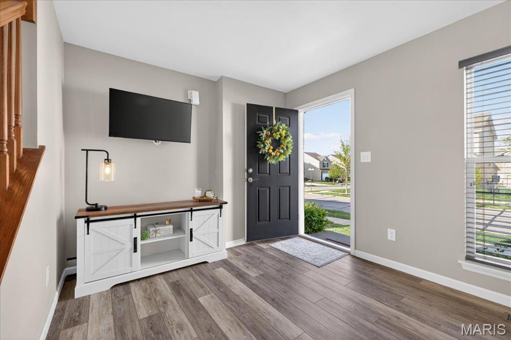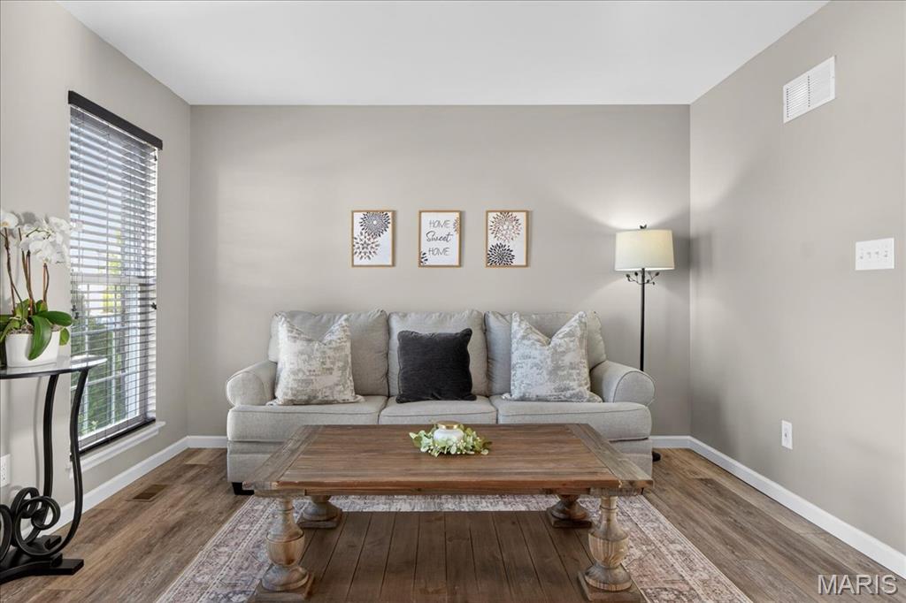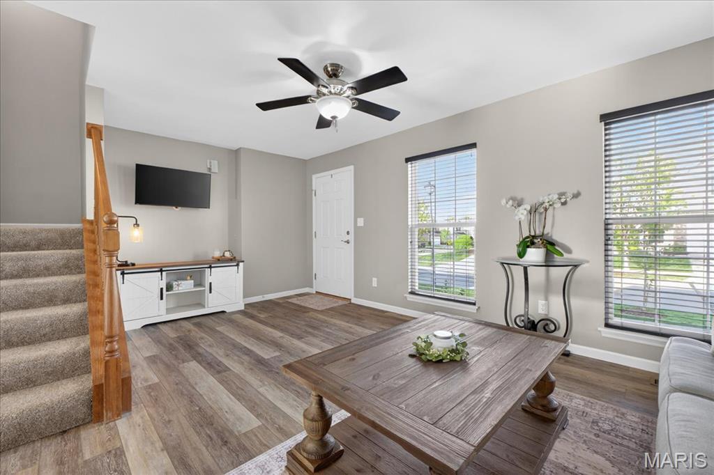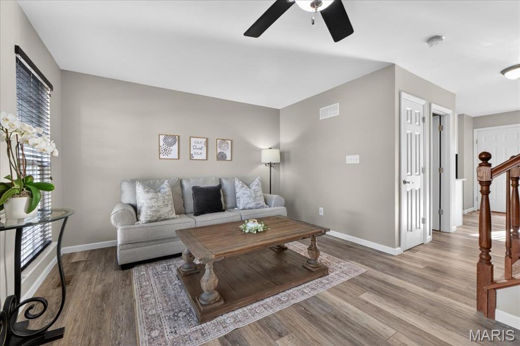 Welcome to 463 Wild Oak Drive, located in the Villages of Springhurst community and the Wentzville School District. This home showcases thoughtful improvements throughout along with access to amenities that support both comfort and convenience. Step inside to find LVP flooring flowing throughout the main level, complemented by a refreshed dining light fixture that adds a warm, modern touch. The kitchen has been enhanced with updated cabinetry, quartz countertops, a new stainless steel sink, new subway tile backsplash, and a full appliance package including a Samsung refrigerator, microwave, brand new electric stove with warming pad and self cleaning feature, and dishwasher, creating a space designed for both everyday living and entertaining. The powder room includes a new vanity top and an elongated water closet. Upstairs, you will find newer carpet with extra heavy padding, adding comfort throughout the second level. The loft area features a ceiling fan with light, offering flexible space for a home office, lounge, or additional living area. Additional features include a Honeywell Smart WiFi thermostat, recently maintained HVAC system, and an LG washer with a 10 year warranty and automatic load balancing. Residents of the Villages of Springhurst have access to community amenities including a pool, playground, and common ground areas. The HOA provides exterior maintenance including roof coverage, lawn care, snow removal, and upkeep of common areas, allowing for a low maintenance lifestyle without the day to day upkeep. Not only that, this home is conveniently located right outside of local groceries stores, restaurants, shopping, HWYs 64/40, 364 and 70!