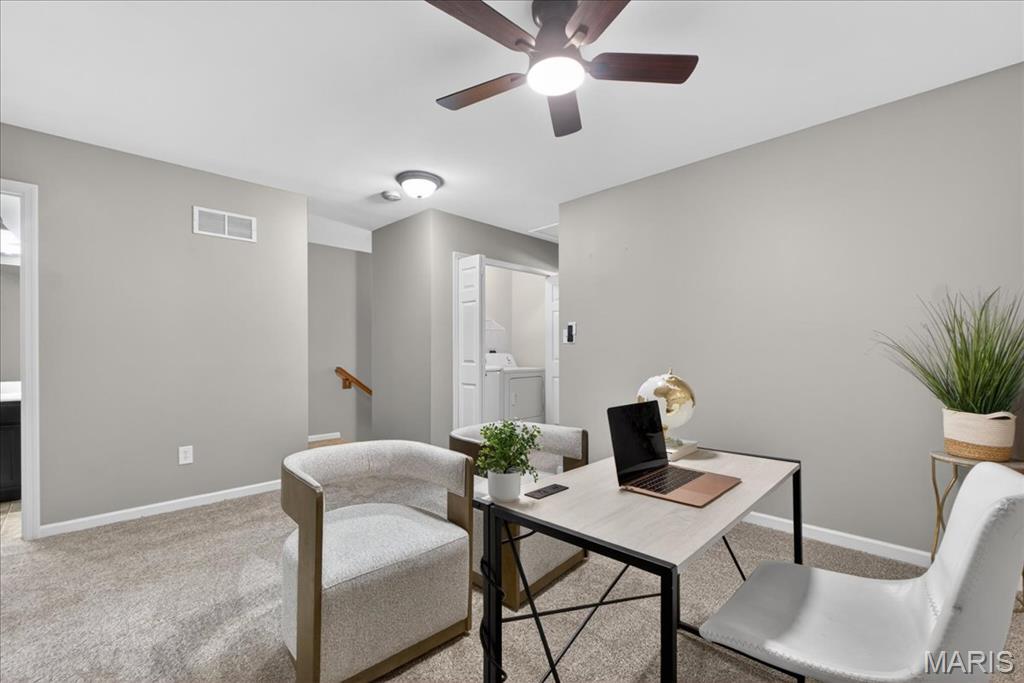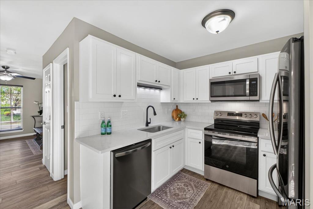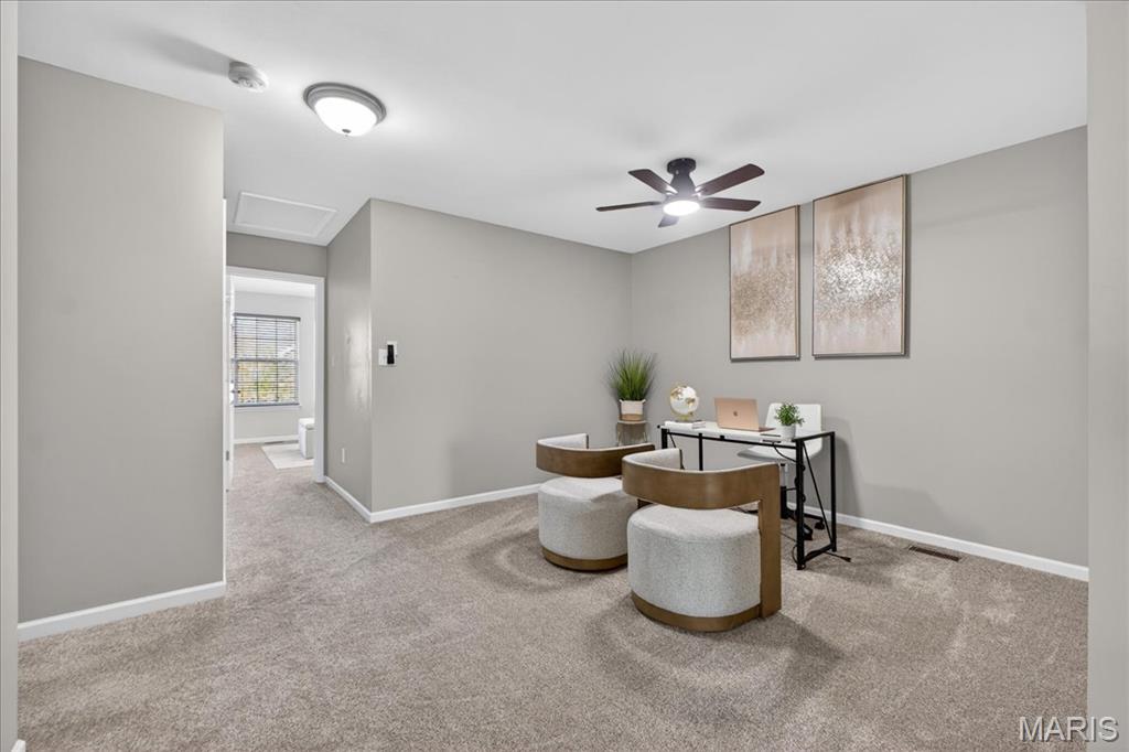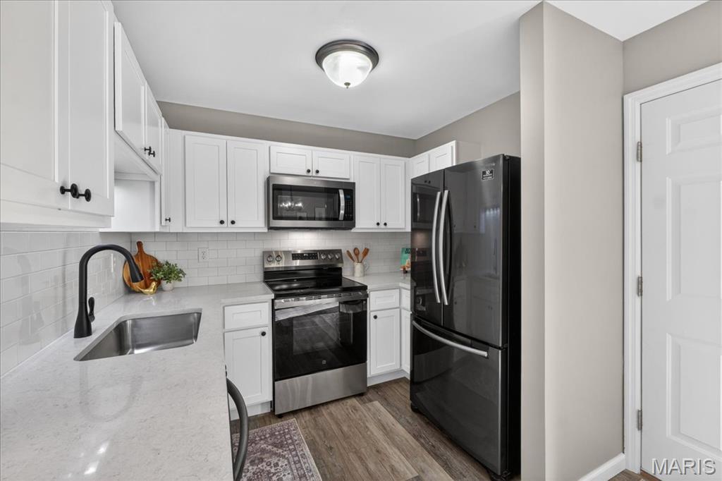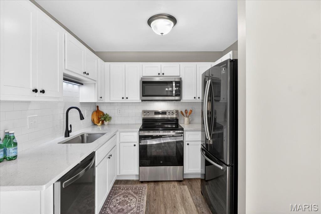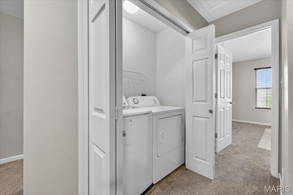 Welcome to 463 Wild Oak Drive, located in the Villages of Springhurst community and the Wentzville School District. This home showcases thoughtful improvements throughout along with access to amenities that support both comfort and convenience. Step inside to find LVP flooring flowing throughout the main level, complemented by a refreshed dining light fixture that adds a warm, modern touch. The kitchen has been enhanced with updated cabinetry, quartz countertops, a new stainless steel sink, new subway tile backsplash, and a full appliance package including a Samsung refrigerator, microwave, brand new electric stove with warming pad and self cleaning feature, and dishwasher, creating a space designed for both everyday living and entertaining. The powder room includes a new vanity top and an elongated water closet. Upstairs, you will find newer carpet with extra heavy padding, adding comfort throughout the second level. The loft area features a ceiling fan with light, offering flexible space for a home office, lounge, or additional living area. Additional features include a Honeywell Smart WiFi thermostat, recently maintained HVAC system, and an LG washer with a 10 year warranty and automatic load balancing. Residents of the Villages of Springhurst have access to community amenities including a pool, playground, and common ground areas. The HOA provides exterior maintenance including roof coverage, lawn care, snow removal, and upkeep of common areas, allowing for a low maintenance lifestyle without the day to day upkeep. Not only that, this home is conveniently located right outside of local groceries stores, restaurants, shopping, HWYs 64/40, 364 and 70!