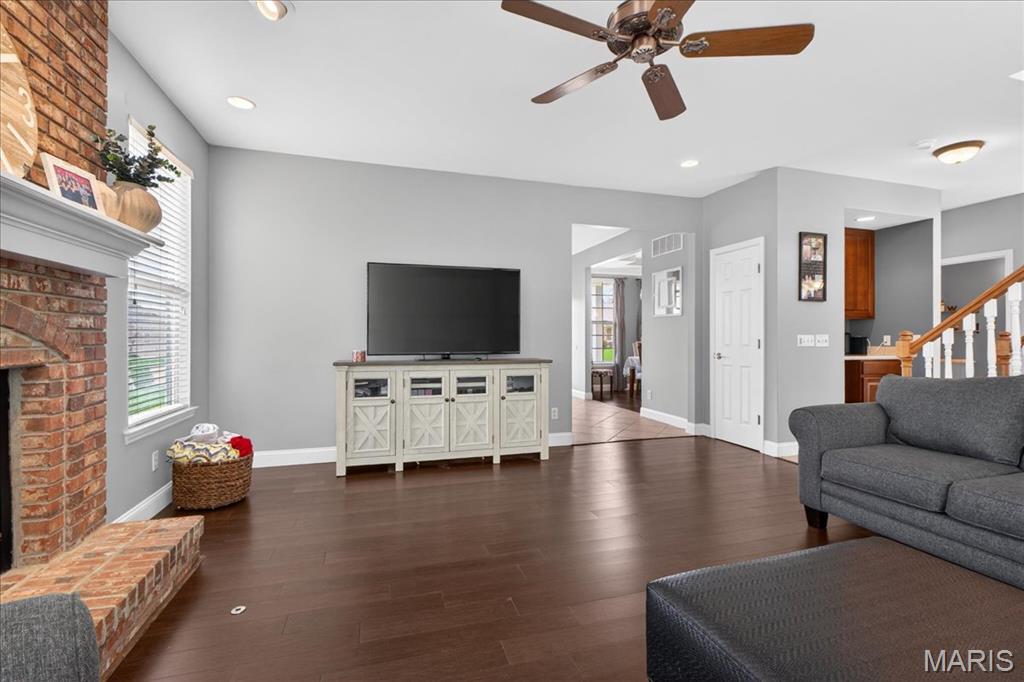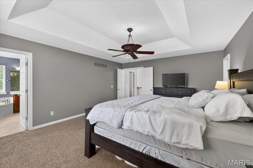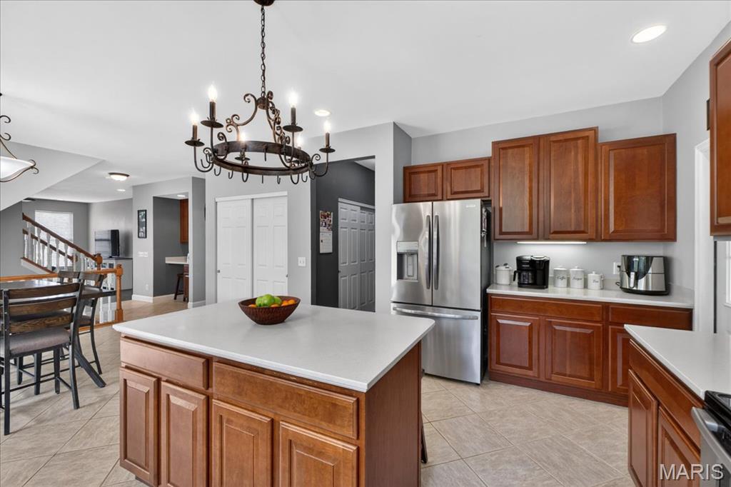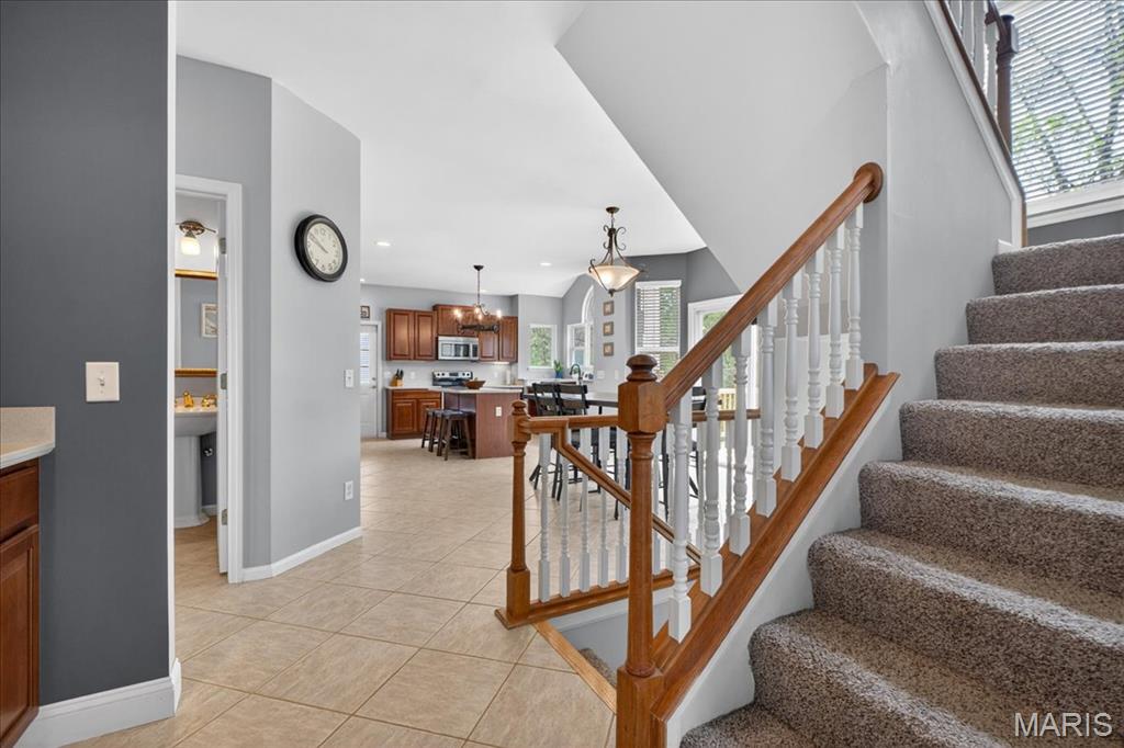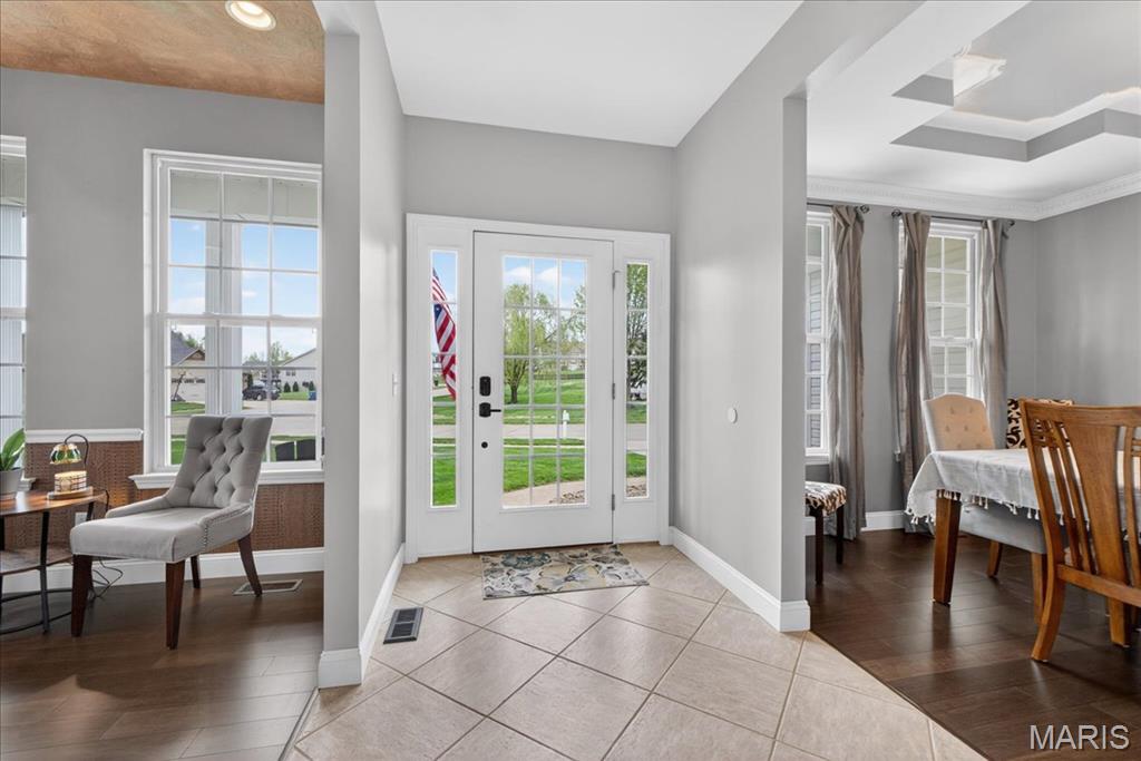 This stunning traditional Colonial, brimming with inviting curb appeal, sits on a spectacular 0.56-acre lot and is sure to impress. From the moment you arrive, it’s clear why this home was selected as one of the original display models for the subdivision. Step inside to find 9-foot ceilings throughout the main level, an elegant tray ceiling in the dining room, and a thoughtfully designed open-concept floor plan ideal for both everyday living and entertaining. The home also features 9-foot basement ceilings, walk-out access, a sprinkler system, and an oversized three-car garage. At the heart of the home, the spacious kitchen is filled with natural light and offers beautiful backyard views. Highlights include a large center island with breakfast bar, custom cabinetry, stainless steel appliances, solid surface countertops, and a eat-in breakfast nook. Enjoy peaceful mornings on the screened-in porch, or unwind in the evening on the recently updated (2026) deck overlooking the serene, wooded backyard. The main-level family room provides a warm gathering space with a gas fireplace, while a formal dining room and versatile living room or home office complete the first floor. Upstairs, a dramatic vaulted loft serves as a central focal point. The expansive primary suite features a tray ceiling, dual walk-in closets, and a beautifully updated (2025) ensuite bath with a soaking tub, glass-enclosed shower, and dual vanities. Three additional generously sized bedrooms and a spacious hall bath complete the upper level. The walk-out basement includes an exercise room and a roughed-in full bathroom, offering endless potential for future finishing. Extensive updates throughout the sellers’ ownership include bamboo flooring on the main level, new roof, gutters, and garage wraps (2026), new water heater (2026), updated deck (2026), new refrigerator (2024), full Carrier HVAC system (2022), and an extended irrigation system (2022). With its thoughtful updates, meticulous care, and move-in-ready condition, this exceptional home is ready to welcome its next owners.