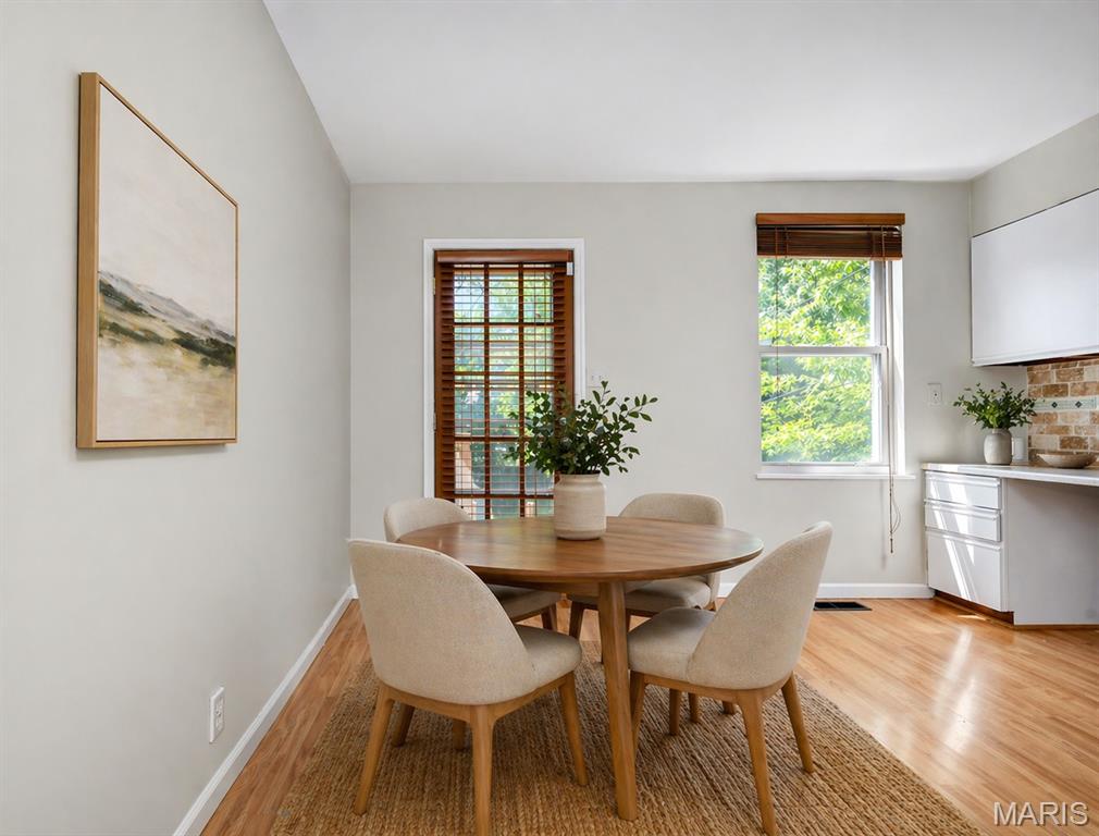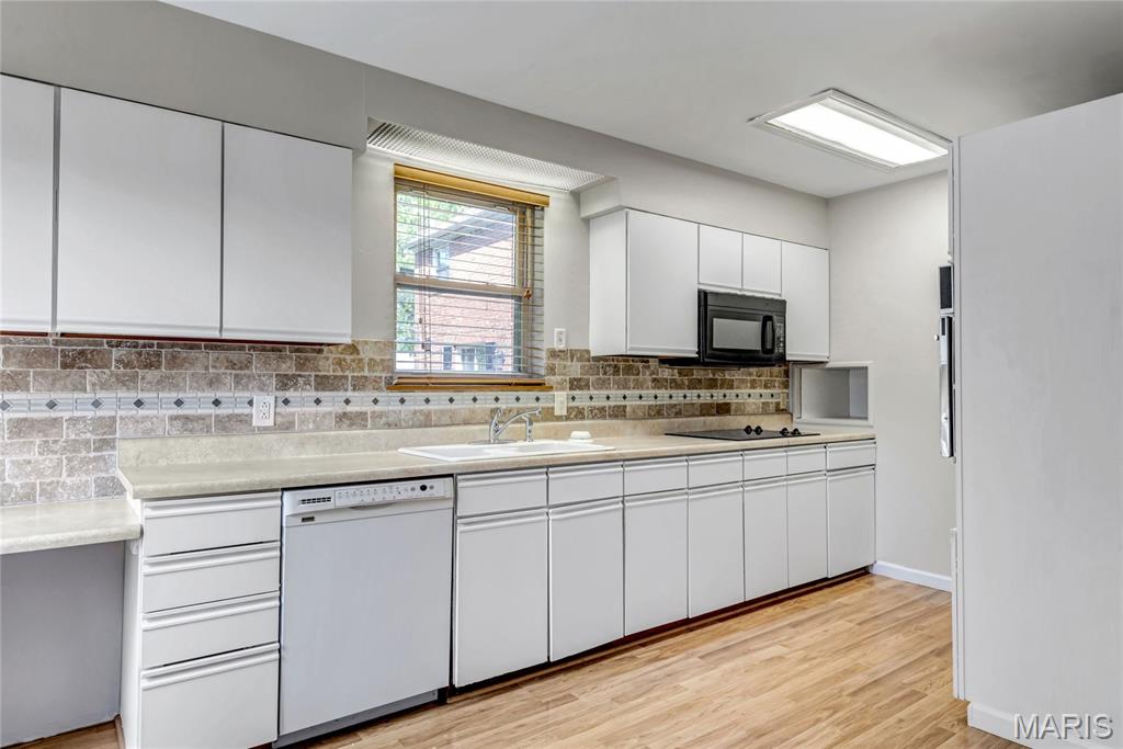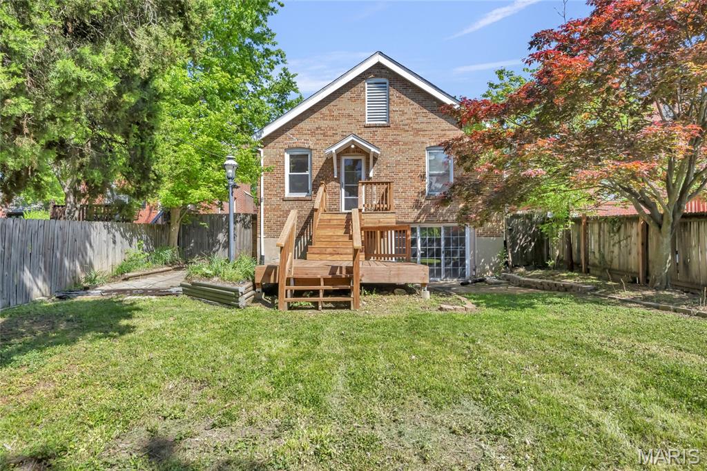 This all brick charmer is located on a fabulous street and location with a private fenced rear yard. All very spacious rooms. Original wood floors greet you in foyer and continue in living & dining room, both large bedrooms, which offer double oversized closets. Eat in white, bright kitchen with abundance of cabinets and counter space, custom back splash, all appliance included (also washer & dryer in LL included-"as is, good working condition"). Kitchen has updated hard surface flooring. Mostly finished lower walk out lower level offers additional sleeping, all new carpet and paint, 1/2 bath. Deck and great yard complete the package. Ready for quick close.