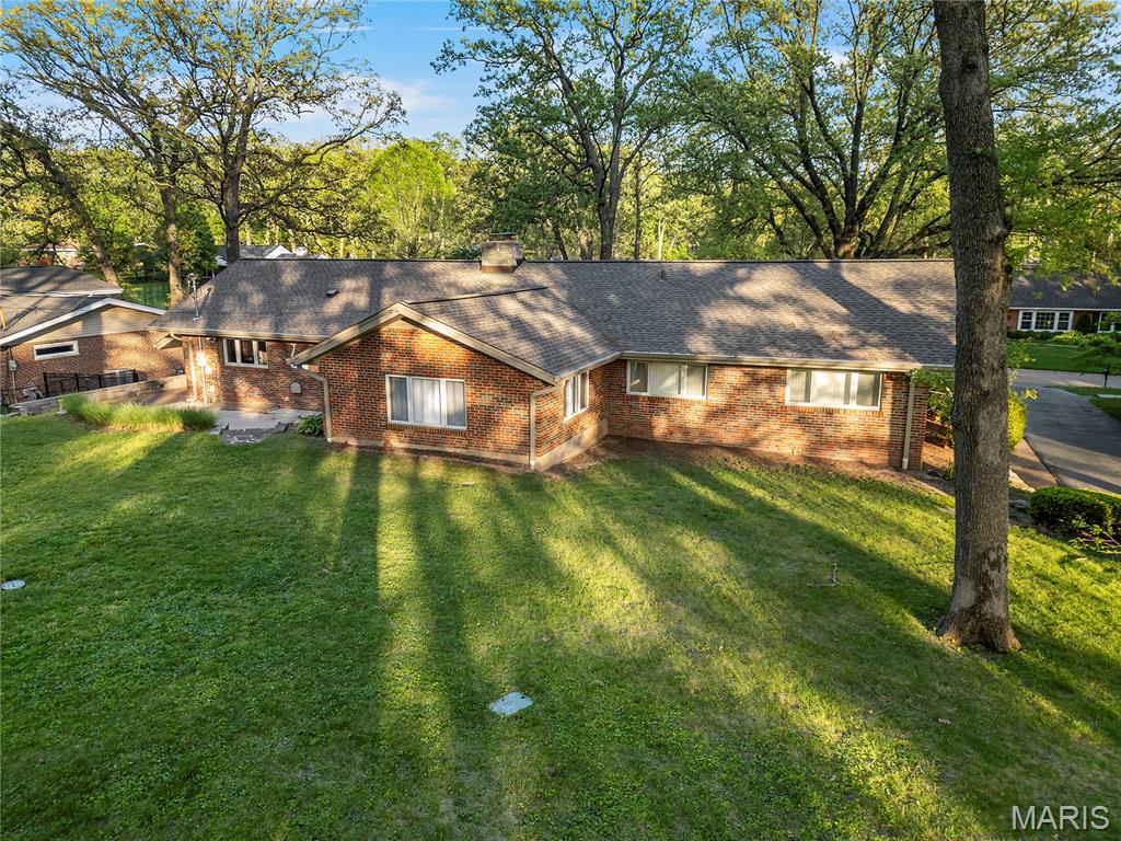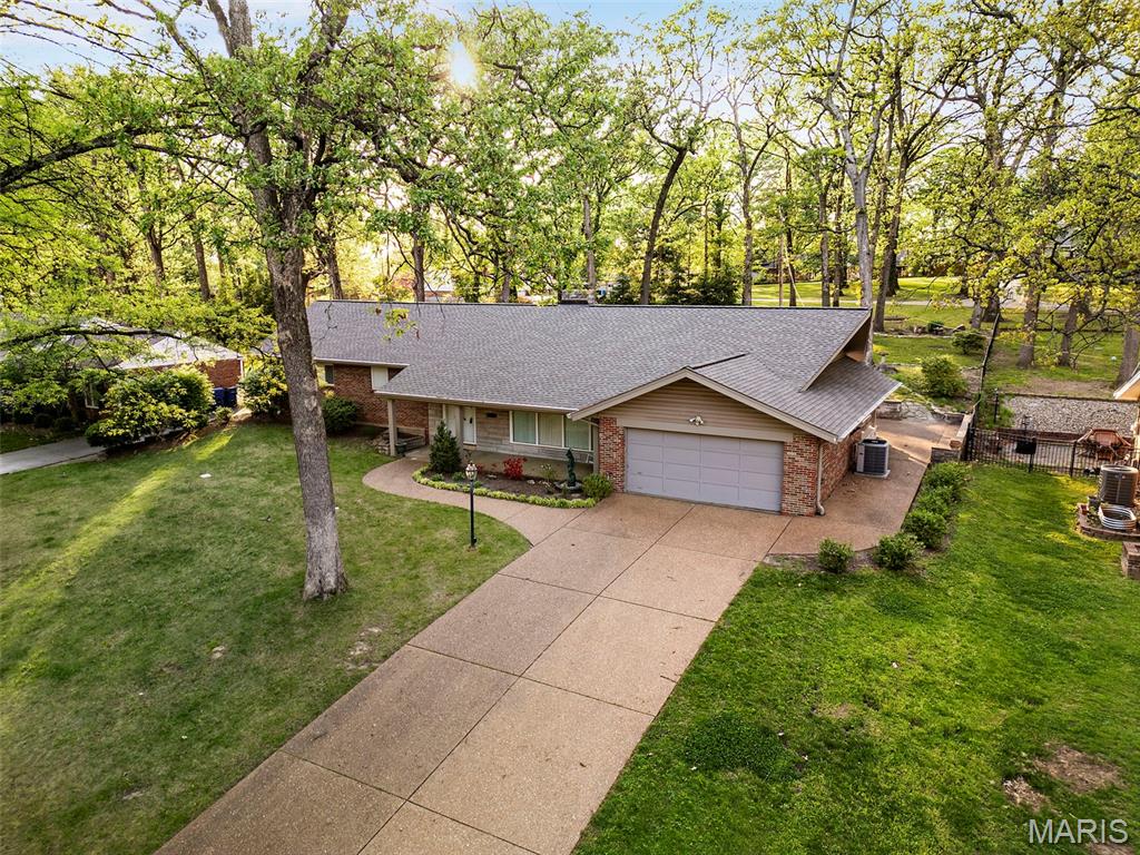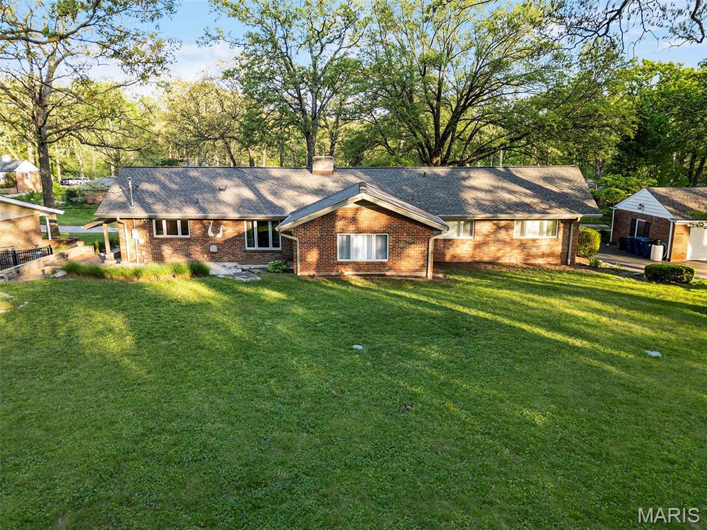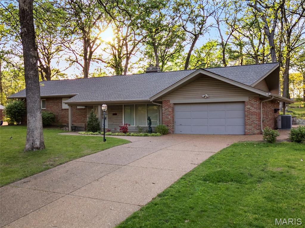 Discover a truly unique floor plan set on a beautiful, open lot just under half an acre in the heart of Grantwood Village, within the highly sought-after Lindbergh School District. This 3-bedroom, 2-bath brick home offers a rare blend of mid-century character and modern updates, all surrounded by exceptional outdoor space. The kitchen is a standout, featuring granite countertops, white retro steel cabinetry, stainless steel appliances, a center island, pantry, and recessed lighting, perfectly blending vintage charm with modern convenience. The sunken living room with indirect lighting and large picture window makes this a one of a kind setting. Both bathrooms have been tastefully updated, including one with a delightful retro garden tub that adds character you won’t find in today’s new builds. An exposed aggregate driveway leads to the two car garage and enhances curb appeal, complemented by covered soffits and fascia and a full irrigation system for easy maintenance. Inside, the spacious family room features a walk-out to the expansive backyard, creating a seamless connection to the outdoors. Enjoy entertaining or relaxing on the newer patio, overlooking the large, private yard with endless possibilities. Improvements include new patio in 2023, Roof and Gutters replaced in 2024, Bath remodel 2022. With its generous lot size, distinctive design, and desirable location, this home offers a rare opportunity to own something truly special in one of the area’s most established communities.