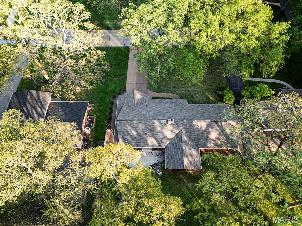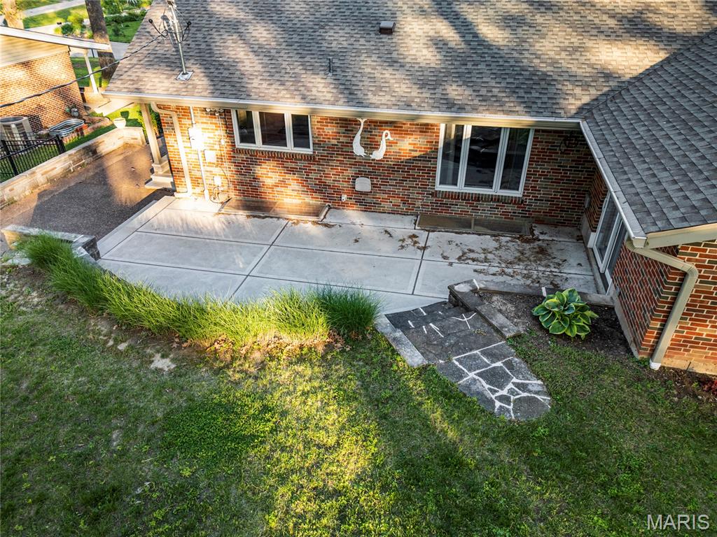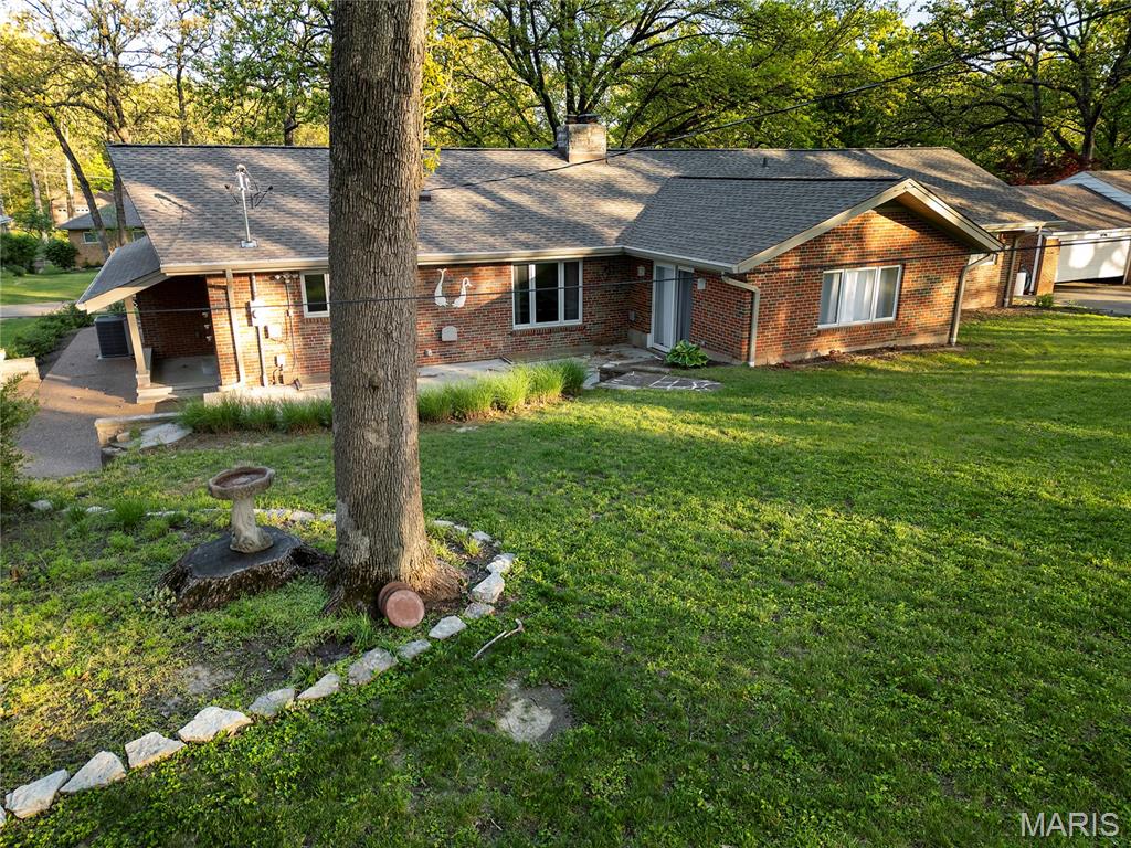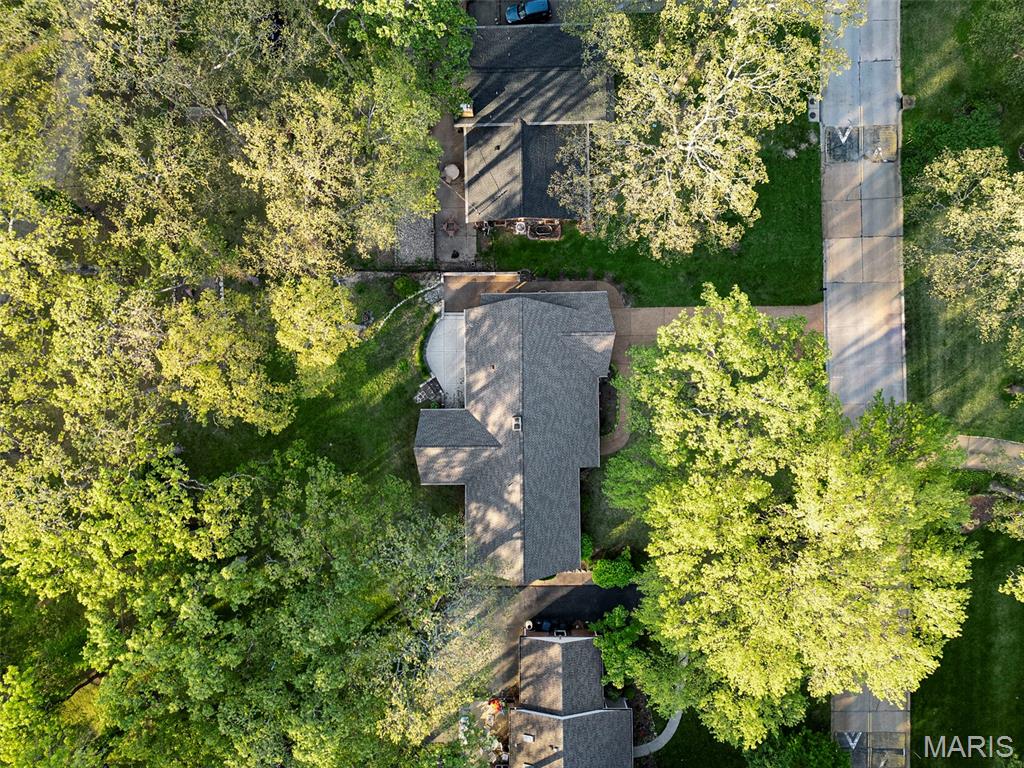 Discover a truly unique floor plan set on a beautiful, open lot just under half an acre in the heart of Grantwood Village, within the highly sought-after Lindbergh School District. This 3-bedroom, 2-bath brick home offers a rare blend of mid-century character and modern updates, all surrounded by exceptional outdoor space. The kitchen is a standout, featuring granite countertops, white retro steel cabinetry, stainless steel appliances, a center island, pantry, and recessed lighting, perfectly blending vintage charm with modern convenience. The sunken living room with indirect lighting and large picture window makes this a one of a kind setting. Both bathrooms have been tastefully updated, including one with a delightful retro garden tub that adds character you won’t find in today’s new builds. An exposed aggregate driveway leads to the two car garage and enhances curb appeal, complemented by covered soffits and fascia and a full irrigation system for easy maintenance. Inside, the spacious family room features a walk-out to the expansive backyard, creating a seamless connection to the outdoors. Enjoy entertaining or relaxing on the newer patio, overlooking the large, private yard with endless possibilities. Improvements include new patio in 2023, Roof and Gutters replaced in 2024, Bath remodel 2022. With its generous lot size, distinctive design, and desirable location, this home offers a rare opportunity to own something truly special in one of the area’s most established communities.